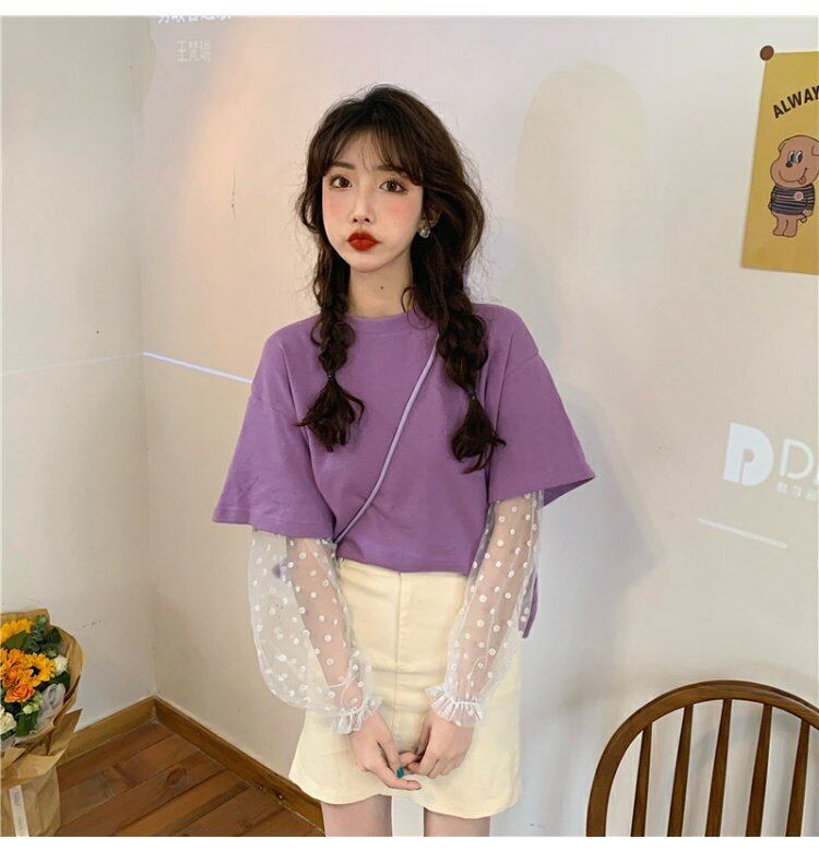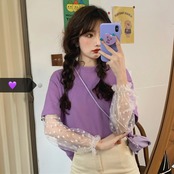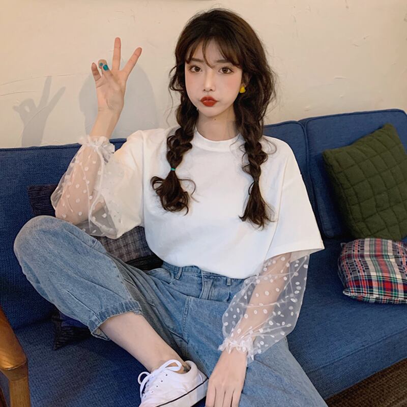 ブラウス 夏服ワンピース韓国ファッションメッシュTシャツレディース 夏物 ステッチ スタイル コーデ marchs6757010817864
