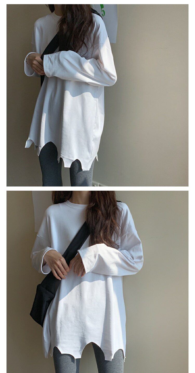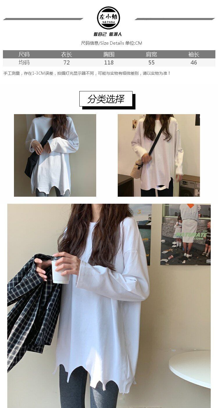 ホワイトTシャツシャツ レディースゆったりスプリングルーズトレンド ロング 春物 長袖 コーデ marchs6771297630747