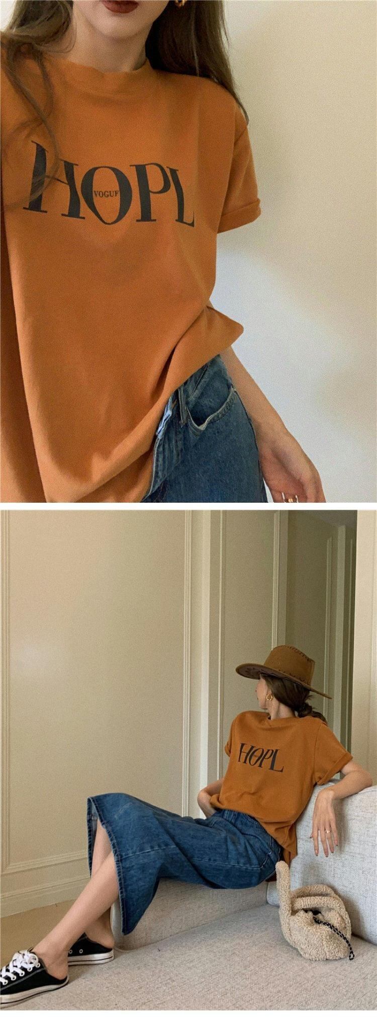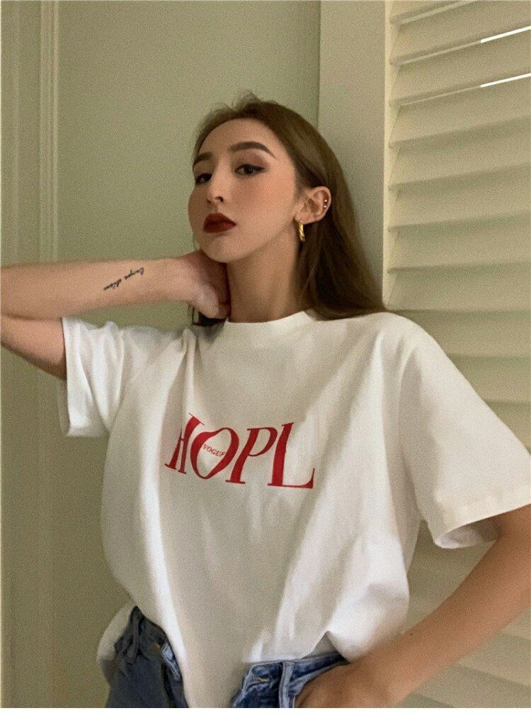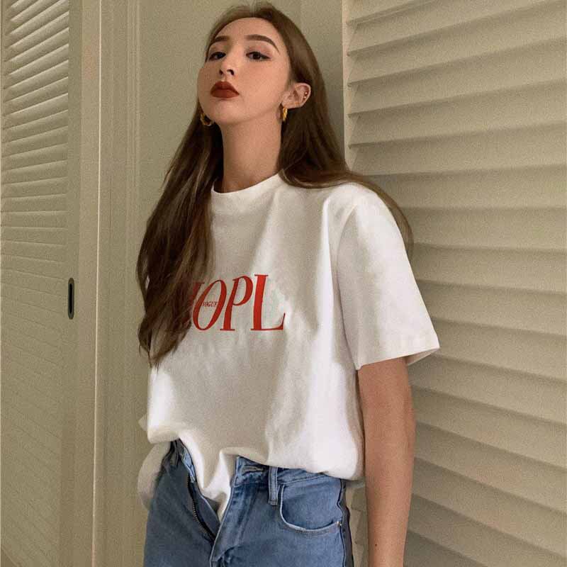 夏服トレンドルーズプリントTシャツレディースラウンドネックトップス 夏物 Oネック ミドル丈 コーデ marchs6767595867558