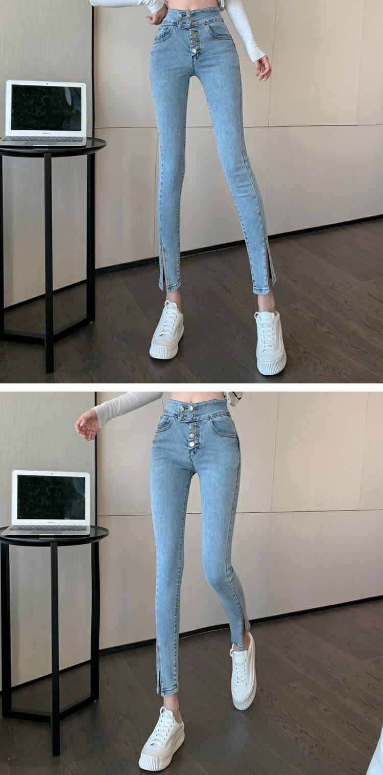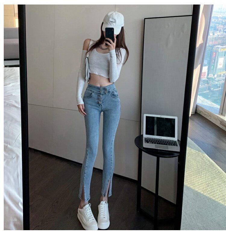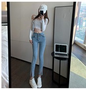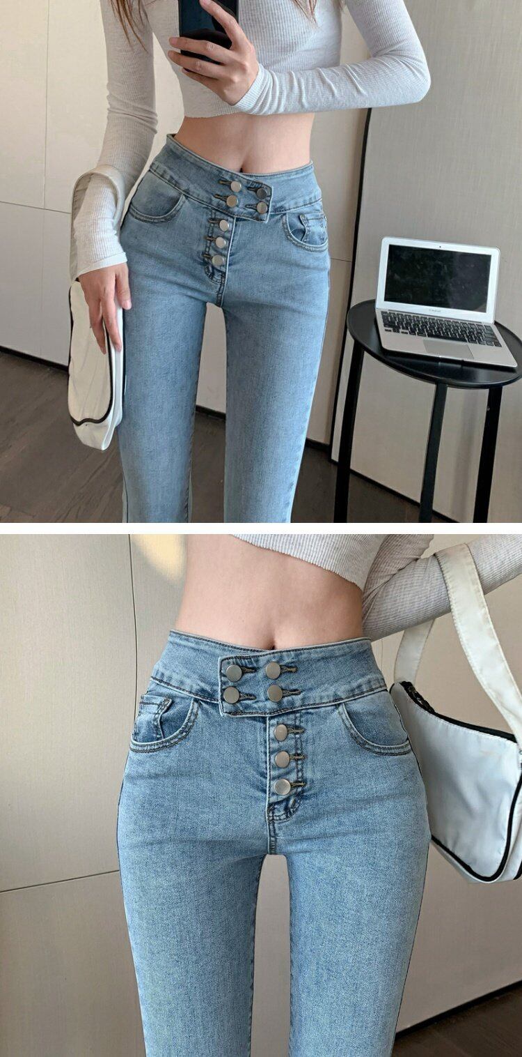 スプリングスリムハイウェストウェストジーンズ レディースパンツ 春物 ウエスト コーデ marchs6727116391547