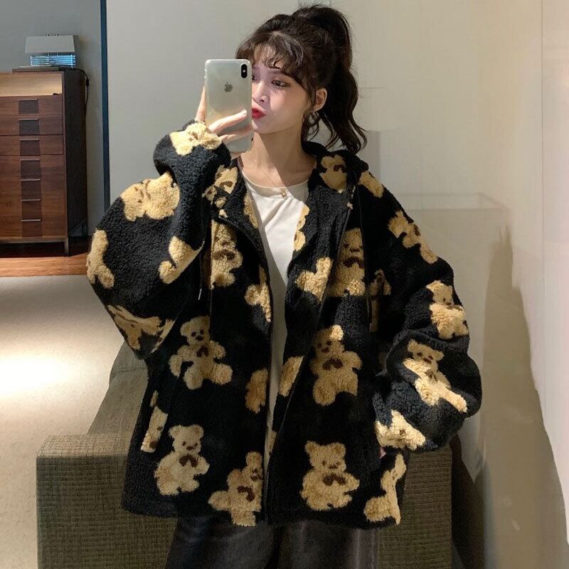ウールセーター コート レディーススプリング韓国ファッション厚みルーズフードトップス 春物 スタイル コーデ marchs6751477359741