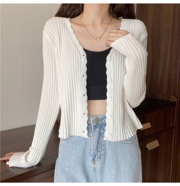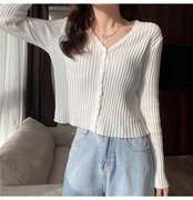 ニットカーディガンスプリング秋物スタイル薄手ホワイトショートジャケット Vネックトップス 夏服 ロング 春物 夏物 オータム 長袖 コーデ marchs6718716144484