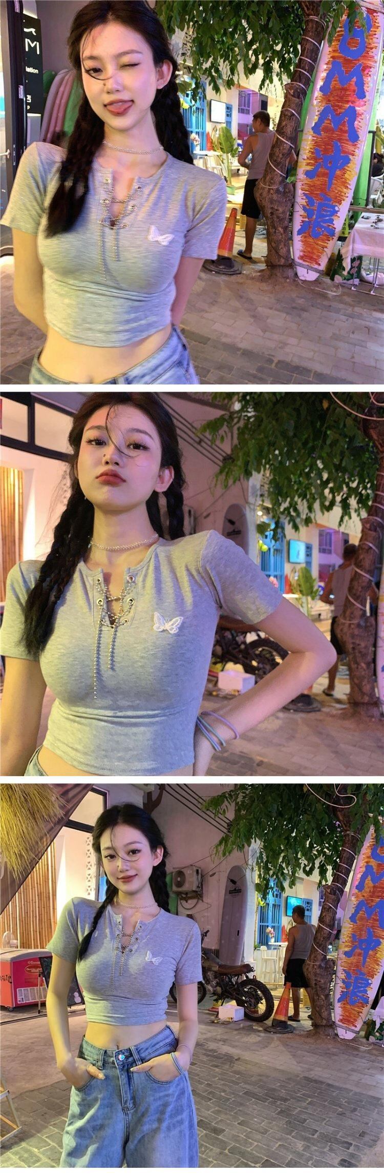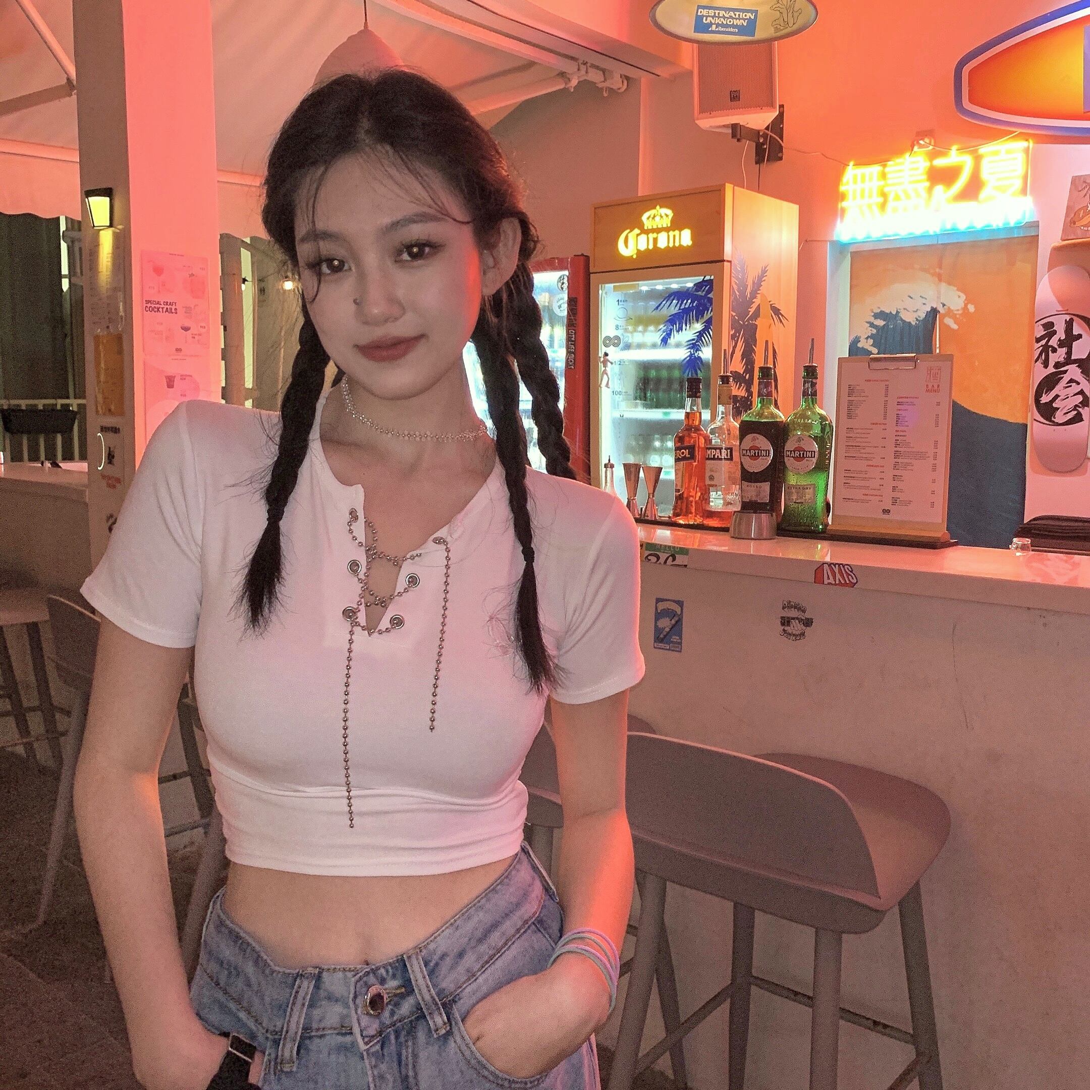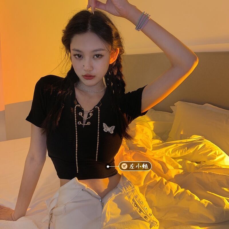 トップス 夏服ショートスリムブラックTシャツレディーストレンド 大人ガーリー スウィート キュート カジュアル 夏物 コーデ marchs6768980513798