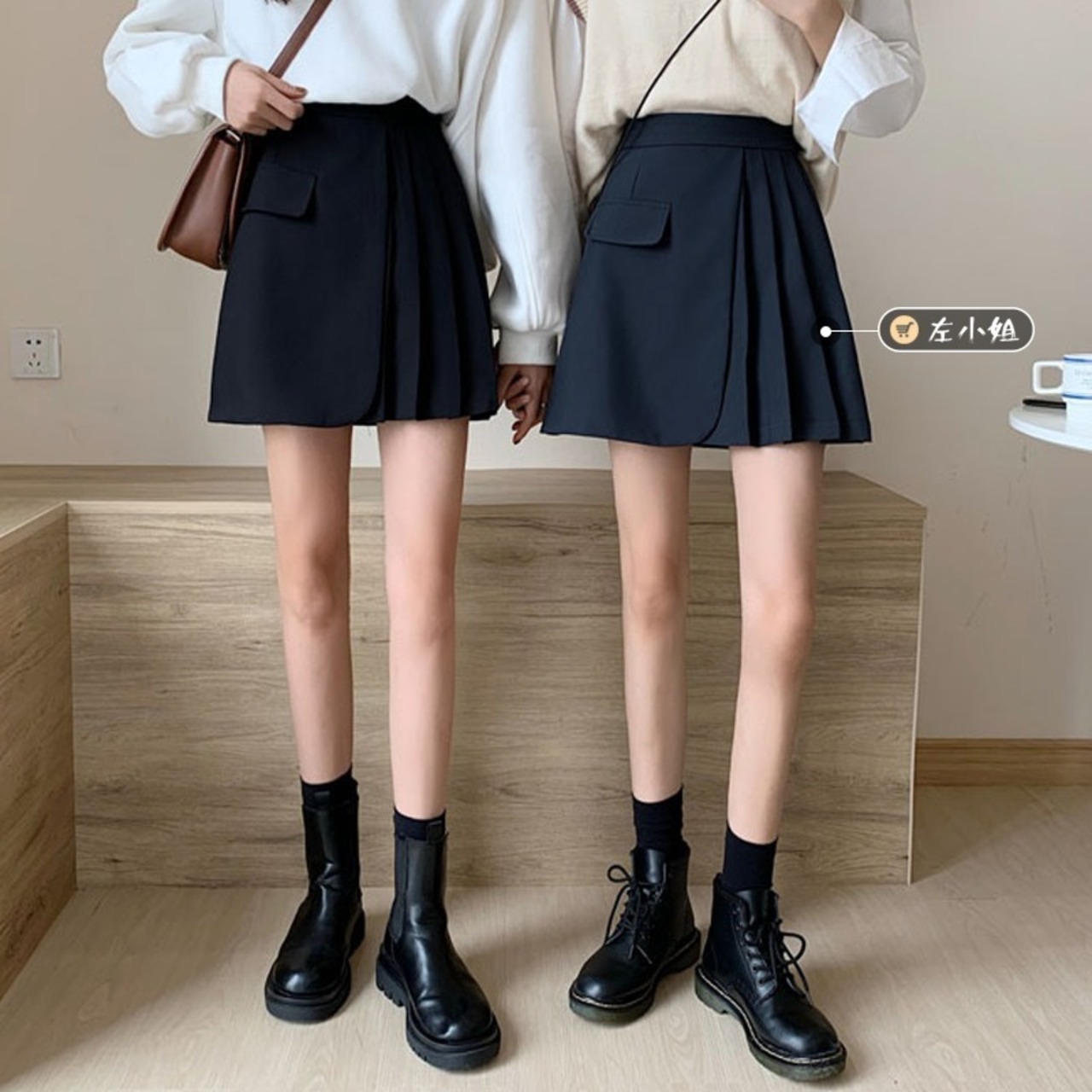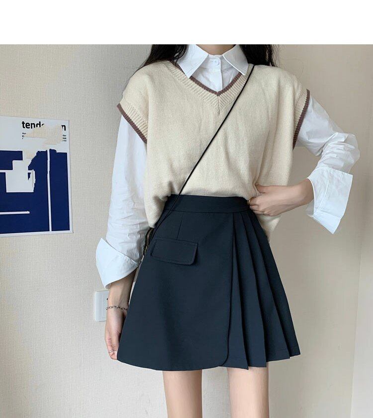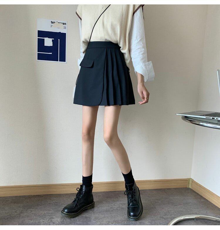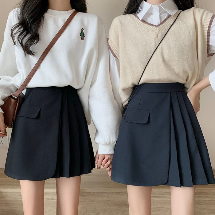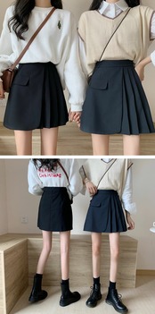 スプリング薄手プリーツAラインショートレディース ハイウェスト 春物 スカート ウエスト コーデ marchs6746856358054