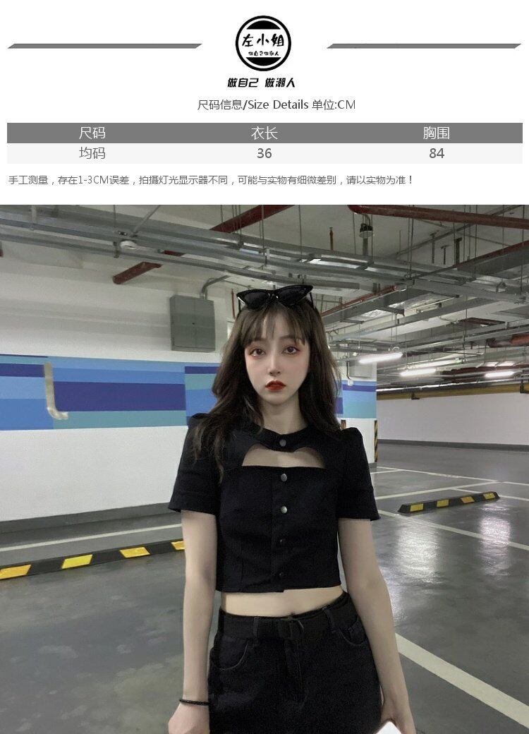 ブラックショートトップス 夏服ハイウェストクロップドシャツ 夏物 ウエスト コーデ marchs6740850178528