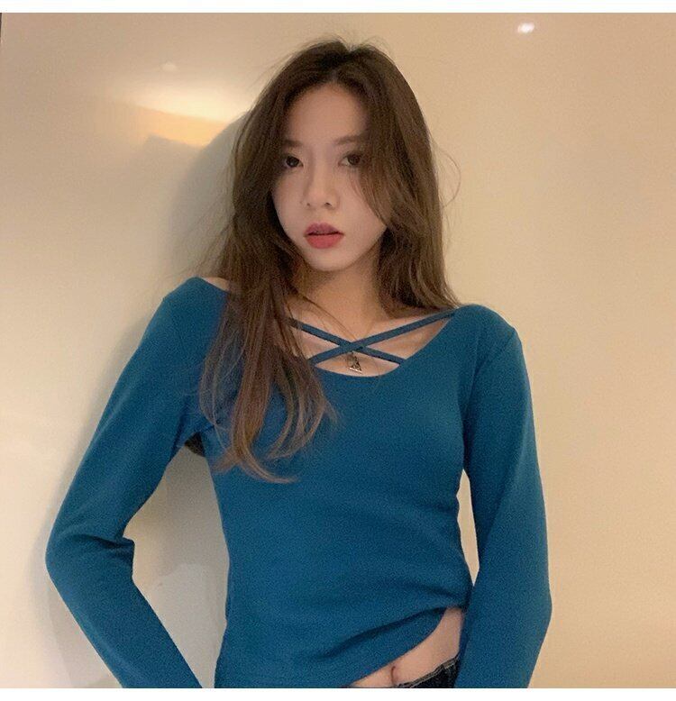 レディーススプリングソリッド カラーショートゆったりトップス ロング シャツ 春物 Tシャツ ソリッドカラー 長袖 コーデ marchs6723709123901