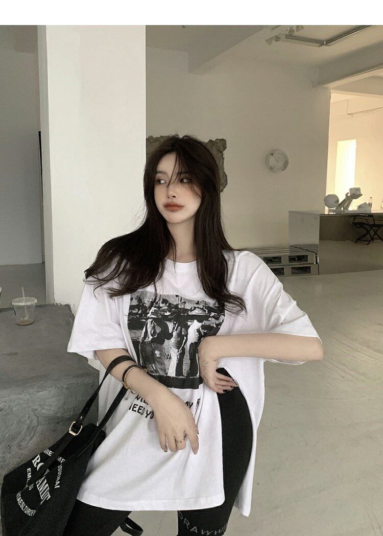 スタイルプリントTシャツ夏服ルーズカジュアルトップス 夏物 ミドル丈 コーデ marchs6797817117679