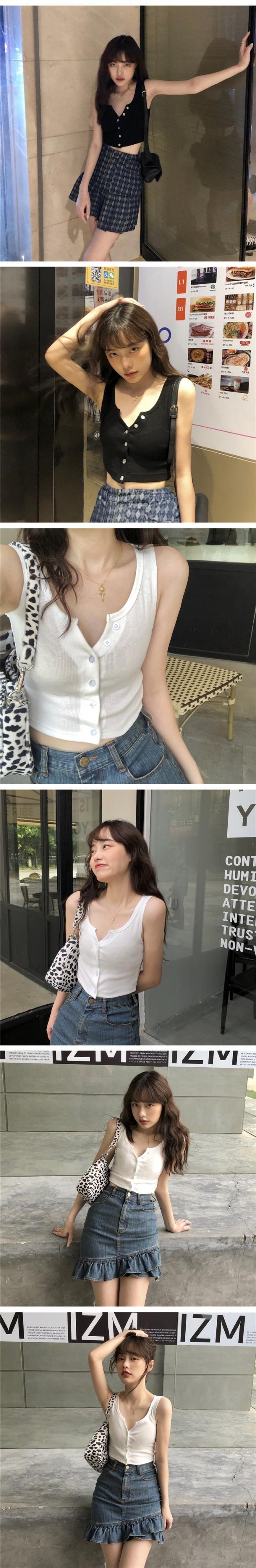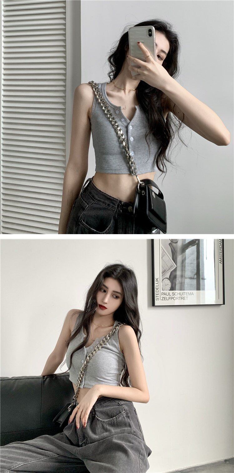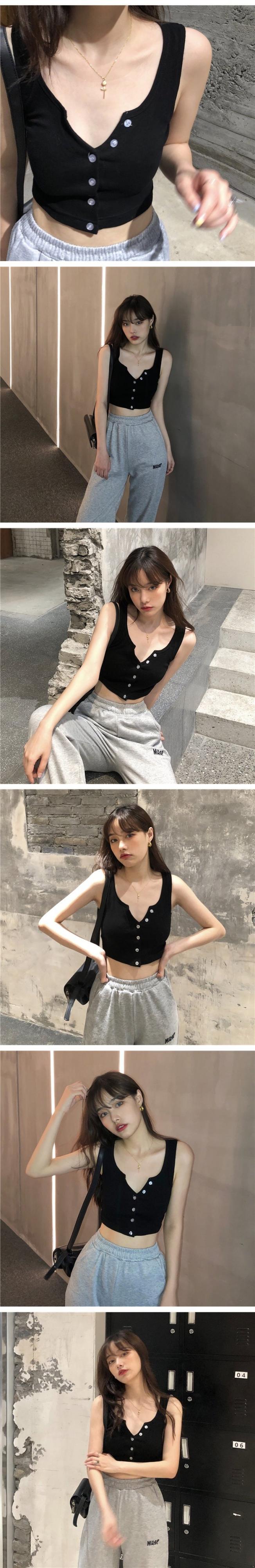 スプリンググレーVネックスリムショートトップス 春物 コーデ marchs6737142421976