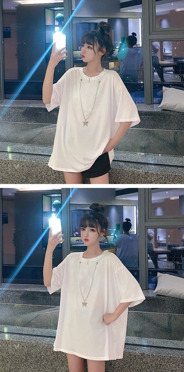 スプリング夏服トレンドButterflyデザイン メタルルーズTシャツトップス 春物 夏物 スタイル ミドル丈 コーデ marchs6739910959283