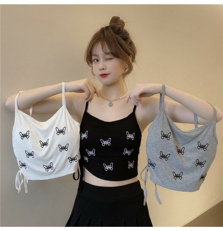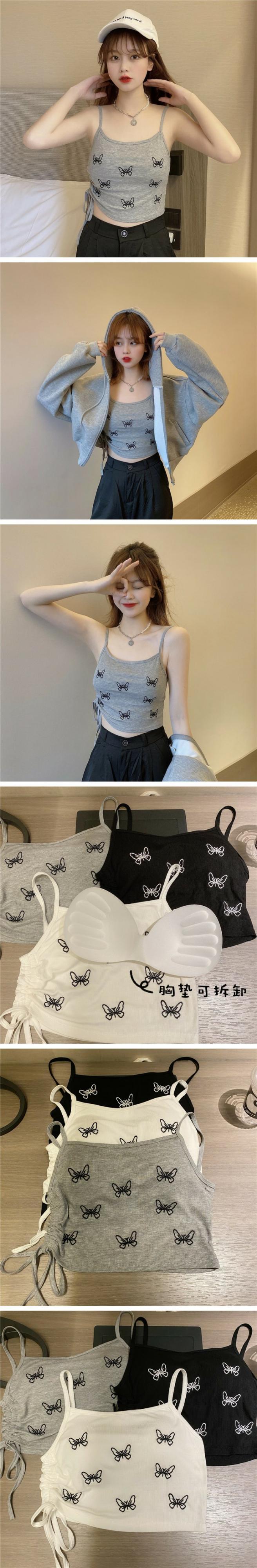 Butterflyデザイン 夏服ギャザーノースリーブトップス 大人ガーリー スウィート キュート カジュアル 夏物 ピュア コーデ marchs6780236881665