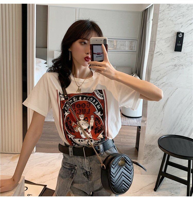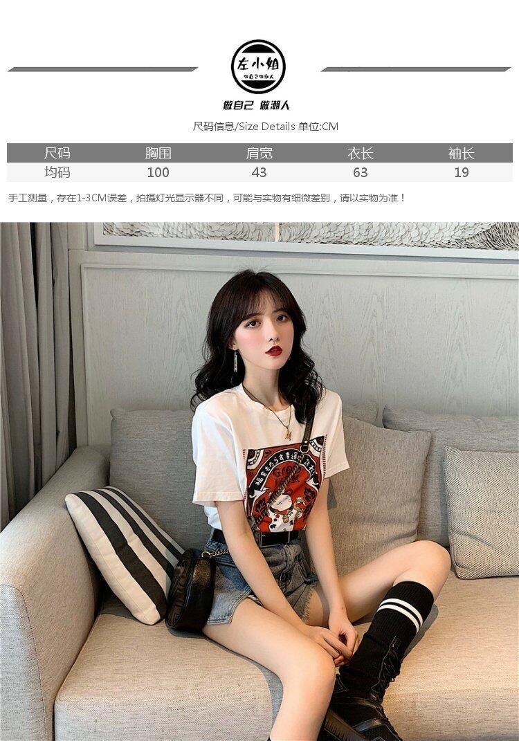 プリント柄Tシャツ夏服スタイル韓国ファッションルーズラウンドネックトップス 夏物 Oネック コーデ marchs6793999144431