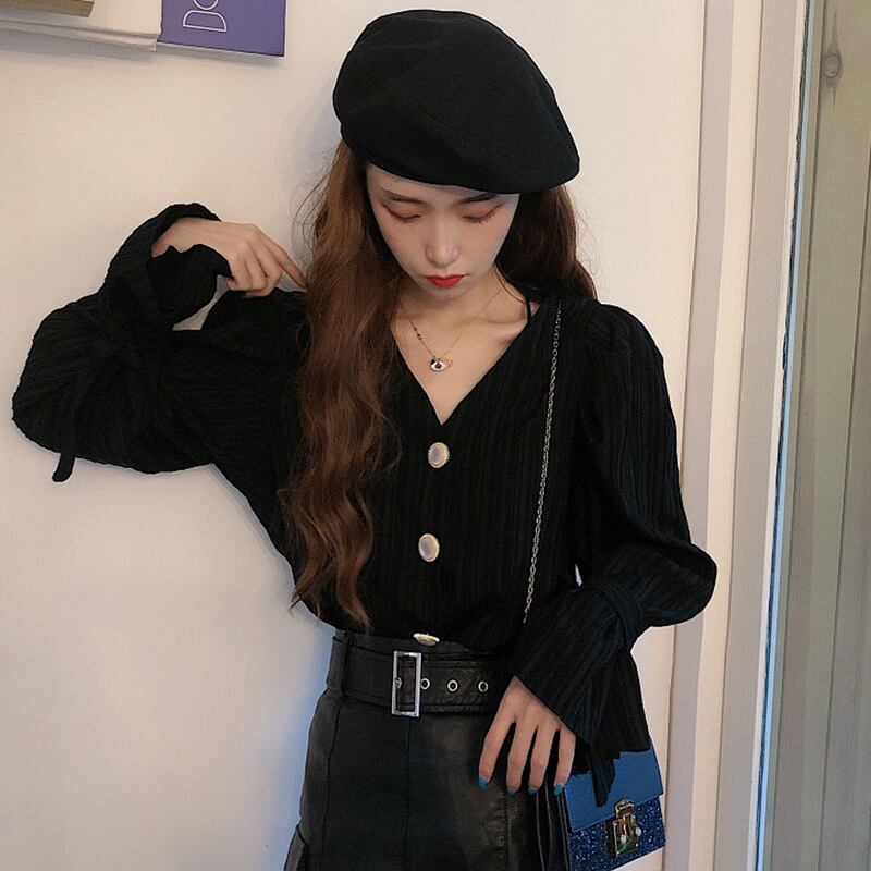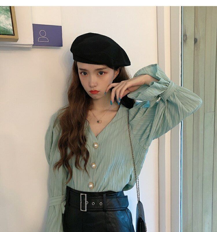 グリーンスリーブシャツ レディーススプリングスタンダードVネックパールトップス レトロ 春物 真珠 コーデ marchs6760395459705