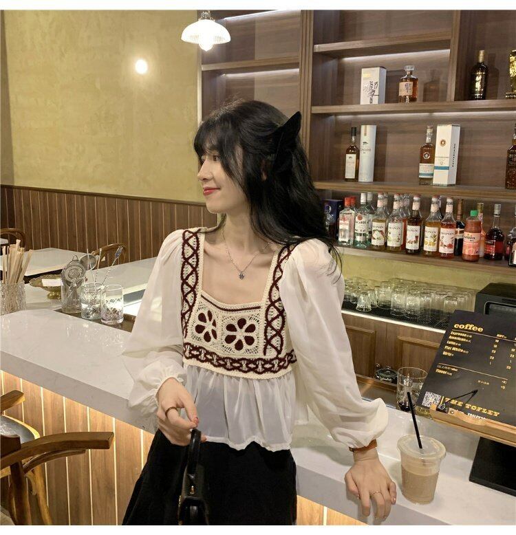 カラーシフォンシャツ レディーススプリング夏服ショートトップス ロング 大人ガーリー スウィート キュート カジュアル 春物 夏物 スクウェア 長袖 コーデ marchs6790421775126
