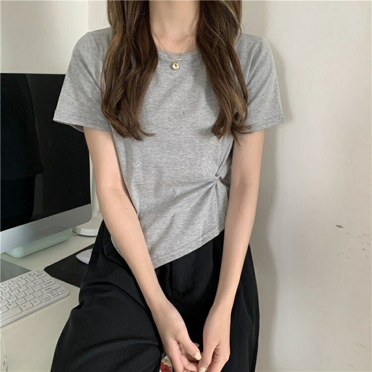 夏服韓国ファッションソリッド カラーショートグレーTシャツレディーストップス 夏物 ソリッドカラー スタイル コーデ marchs6735481039578