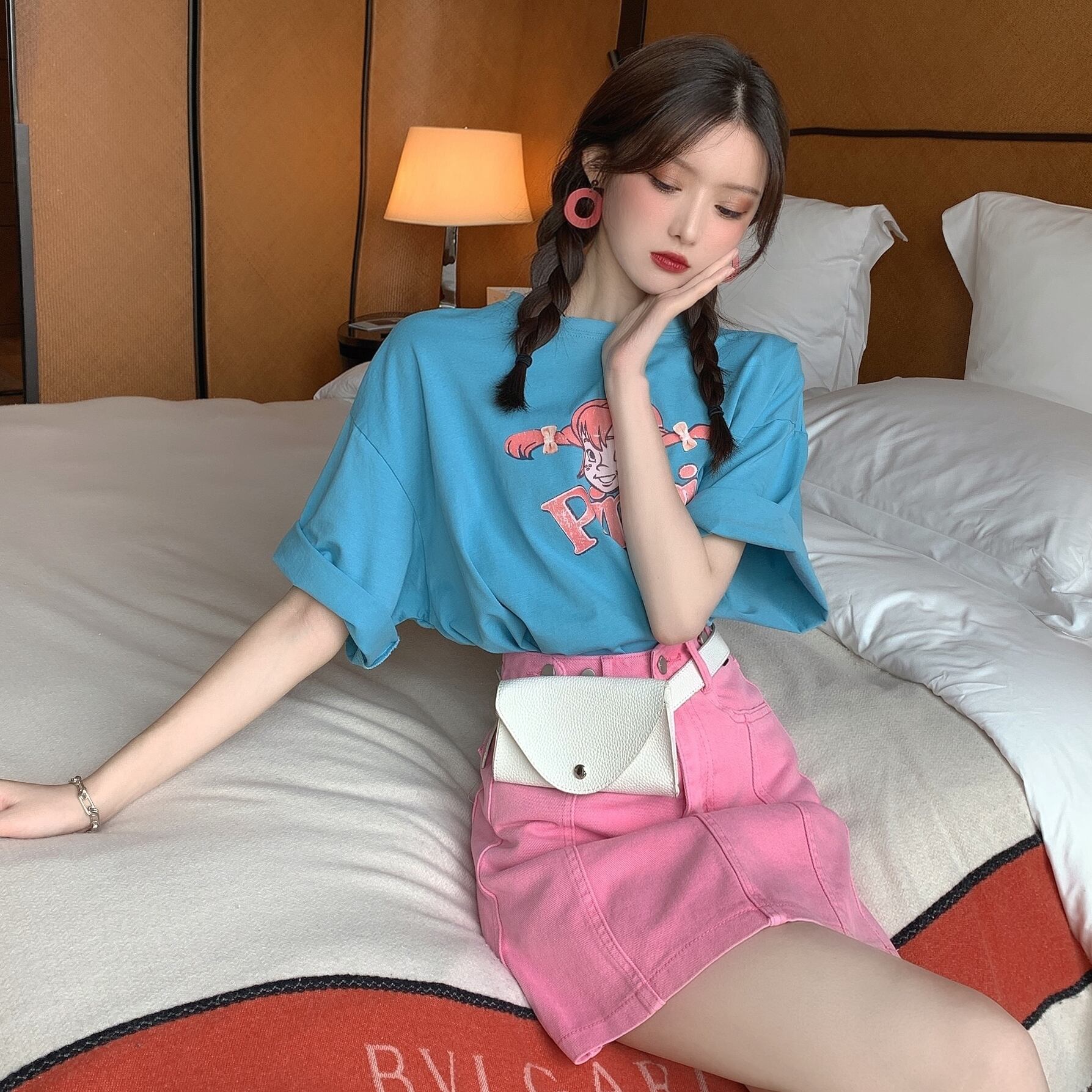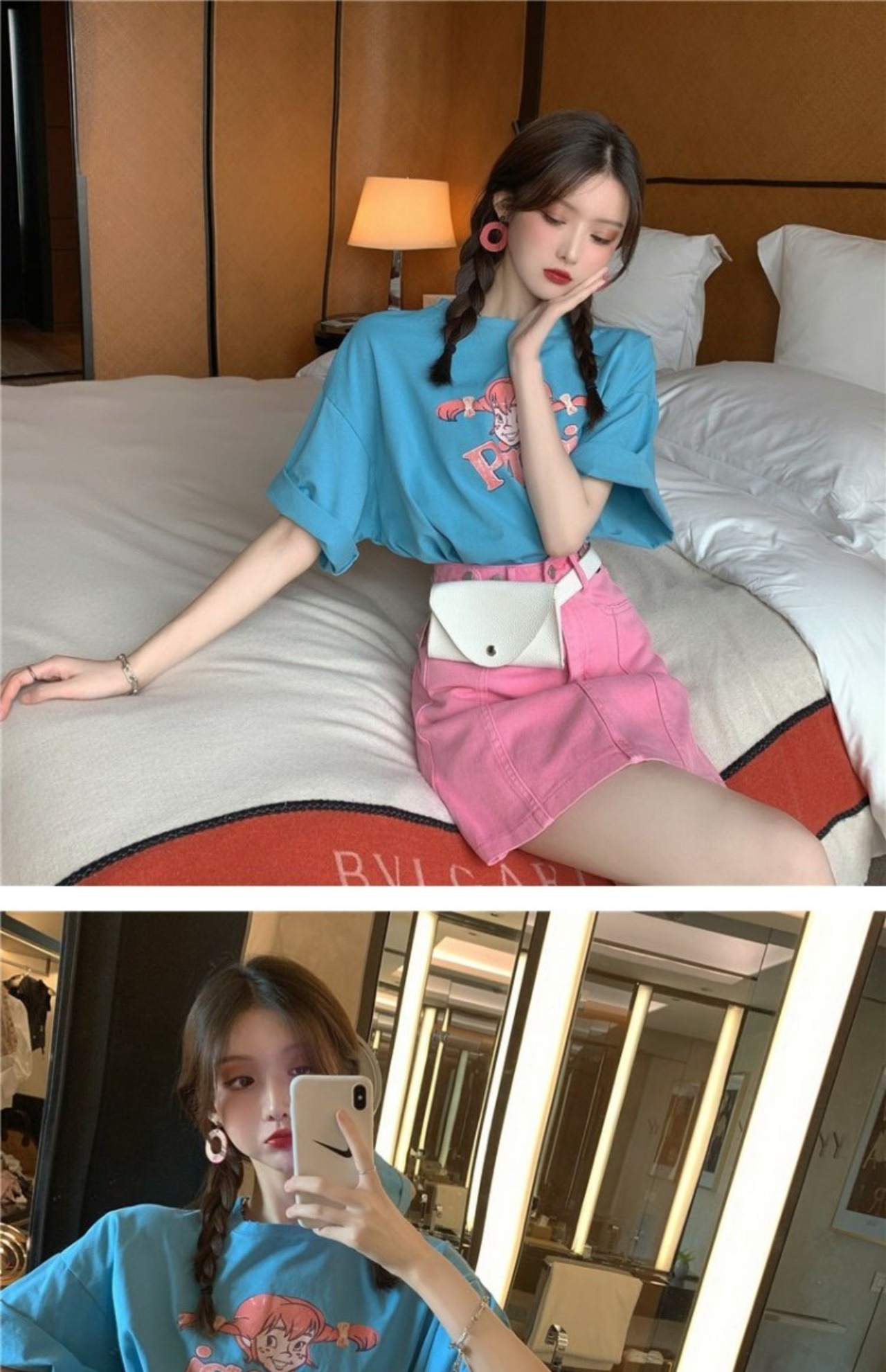 トレンドTシャツシャツ レディーススプリング韓国ファッションルーズプリントゆったりトップス 春物 スタイル ミドル丈 コーデ marchs677041849970