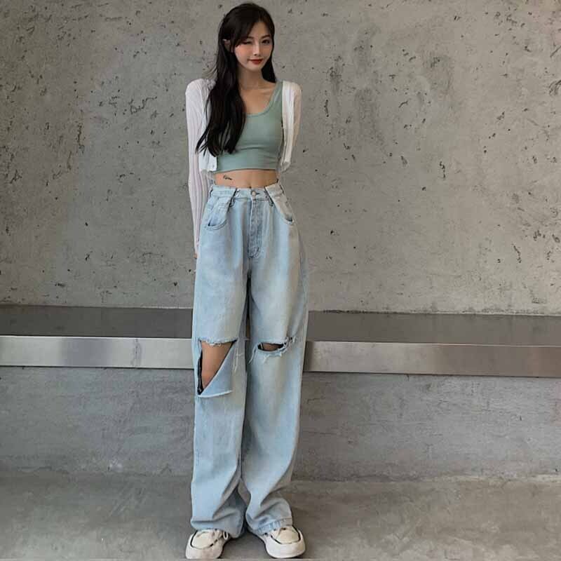 ジーンズ 夏服スタイル韓国ファッションルーズ薄手カジュアルパンツ 夏物 ウエスト コーデ marchs6745282542715