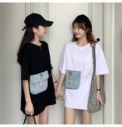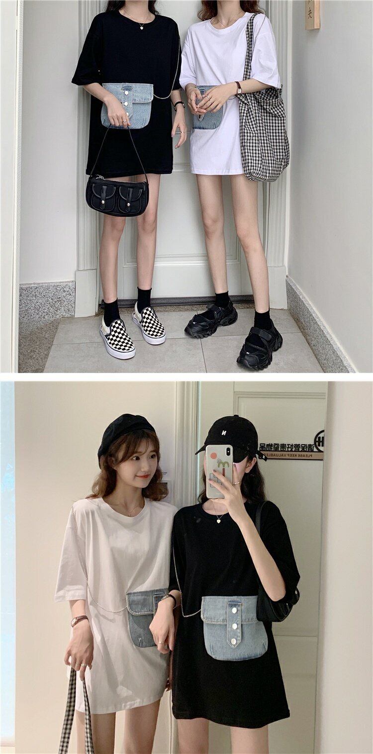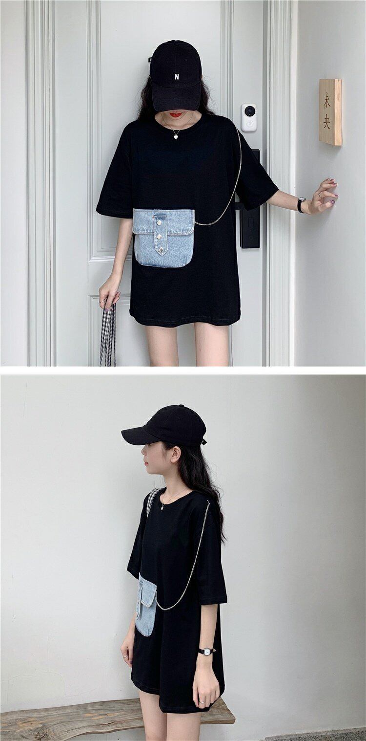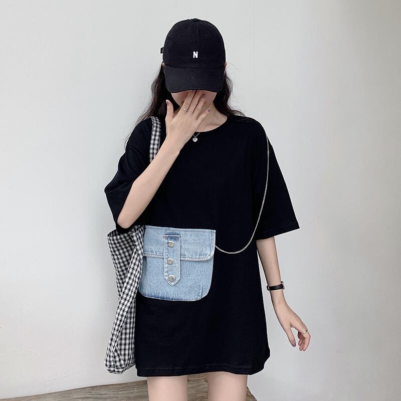 スプリング韓国ファッショントレンドポケットTシャツトップス 春物 ステッチ ミドル丈 コーデ marchs6789997496062