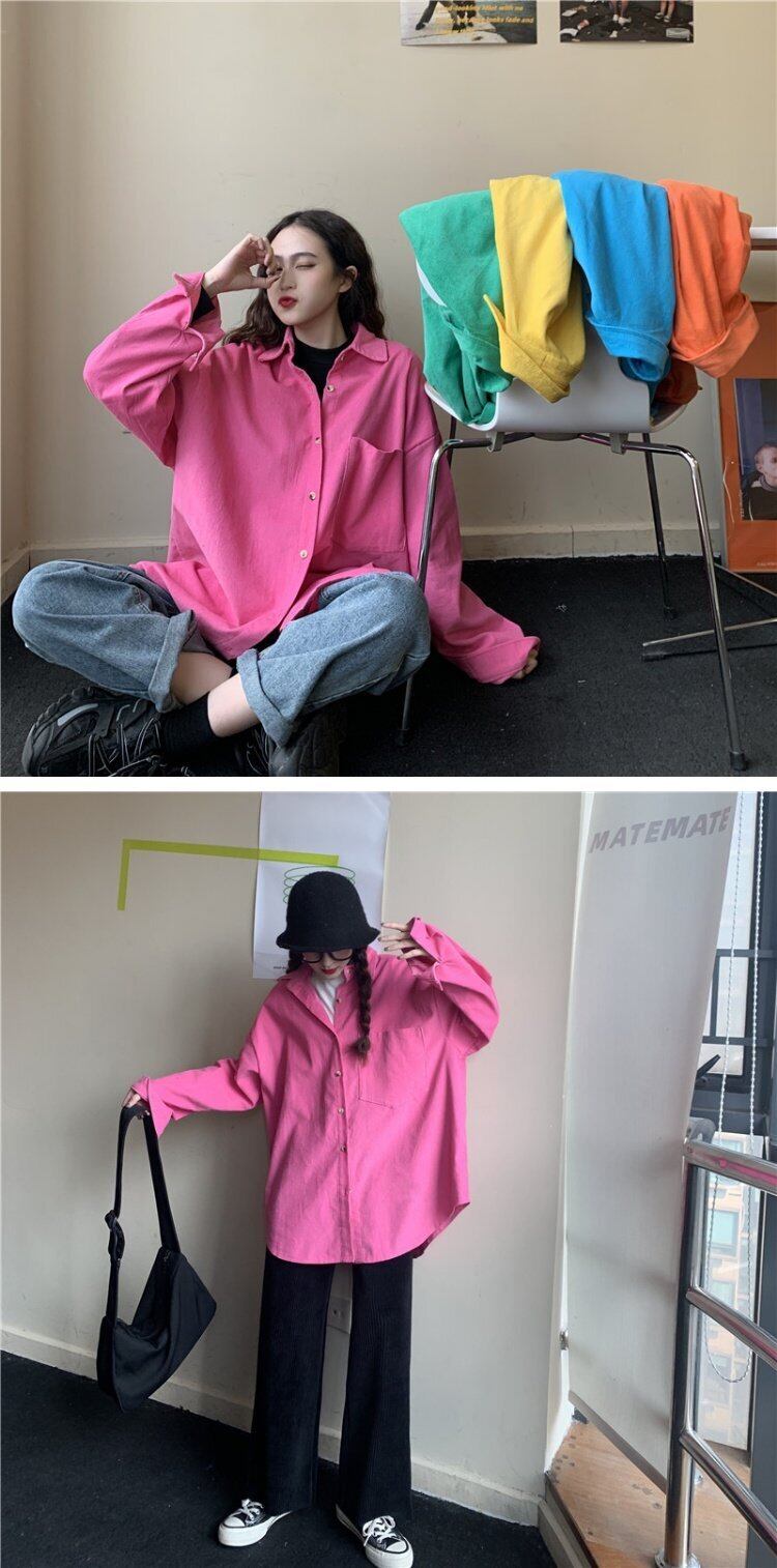 スプリング韓国ファッションルーズコーデュロイカジュアルソリッド カラーシャツ ジャケット レディース ロング 春物 ソリッドカラー ボーイズ スタイル 長袖 ミドル丈 コーデ marchs6738260740882