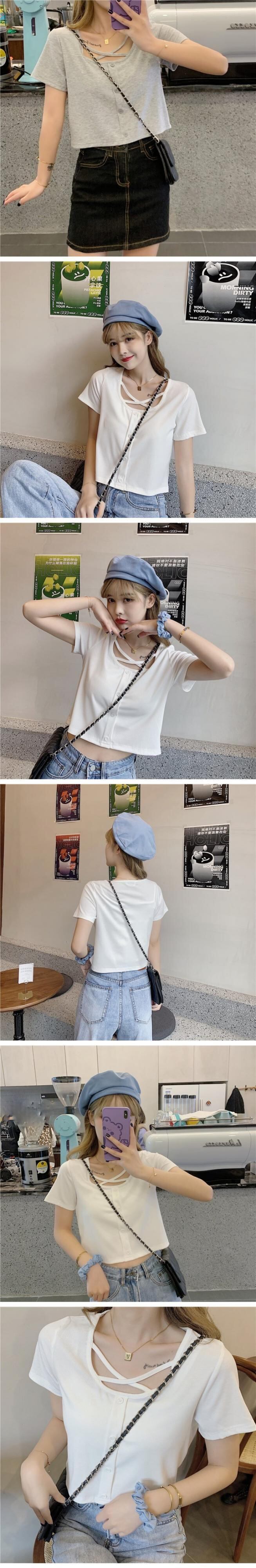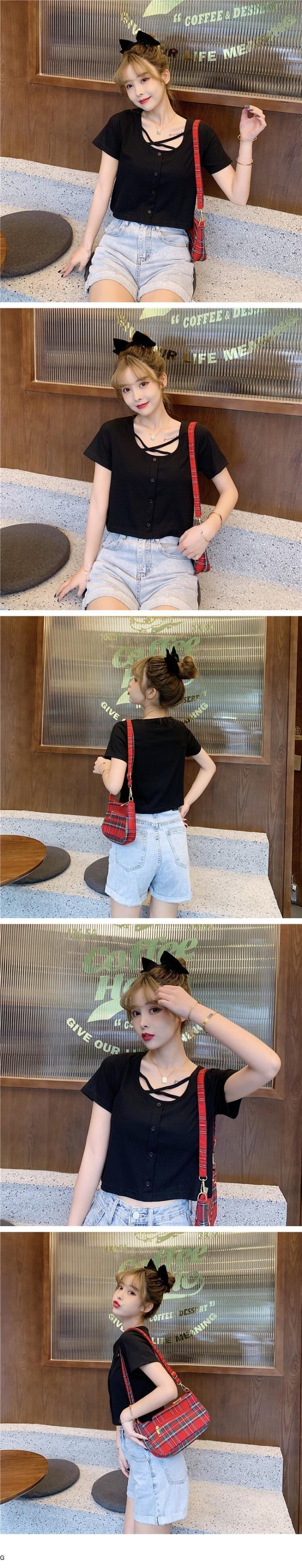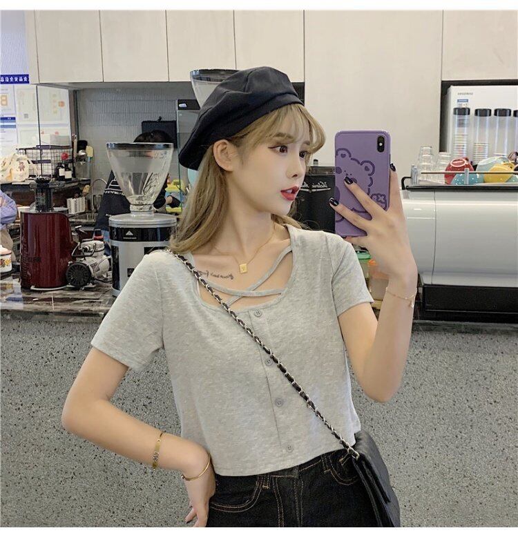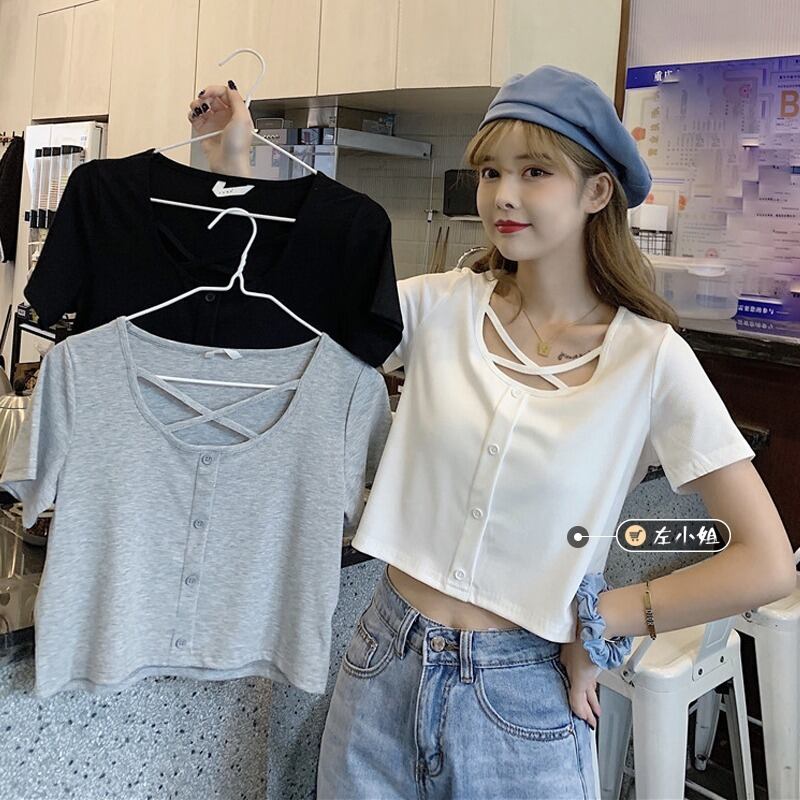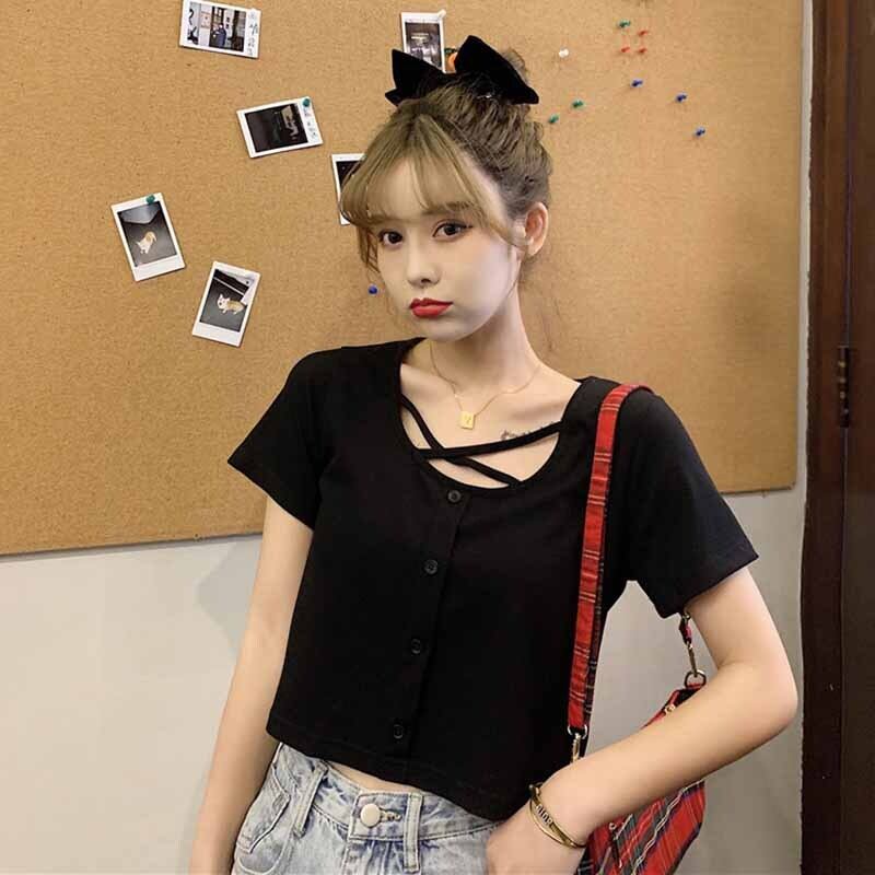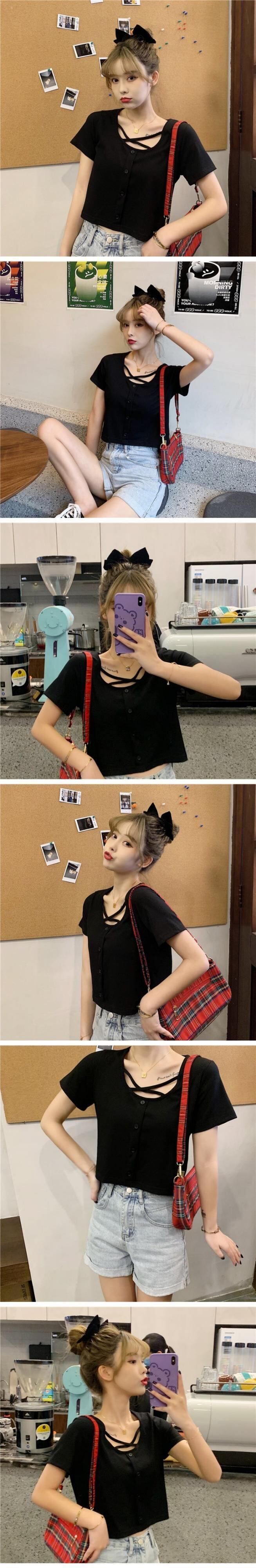 ショートトップス 夏服ブラックTシャツレディース 夏物 コーデ marchs6749877359050