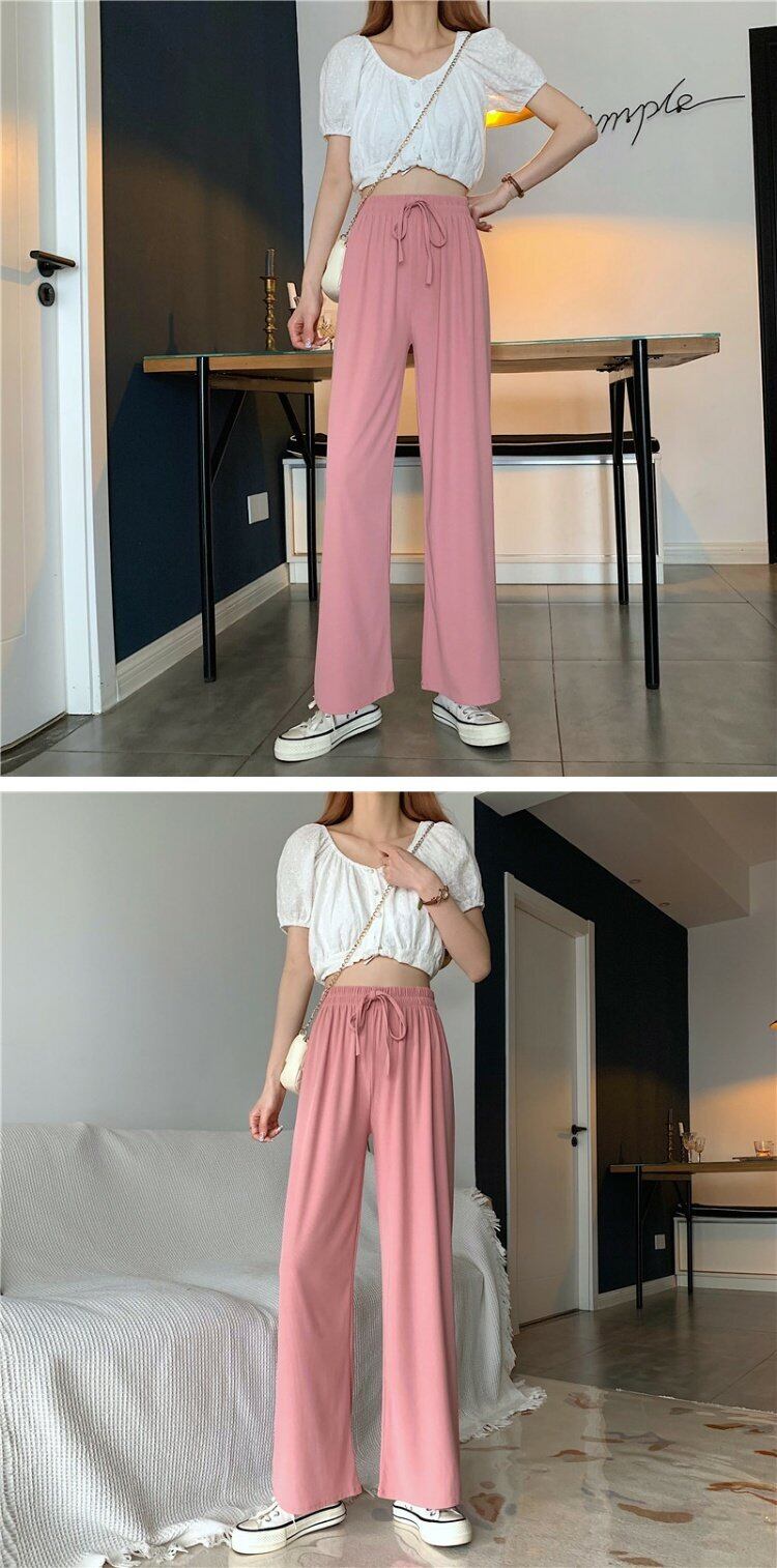 薄手パンツ 夏服ハイウェストウェストルーズトレンドカジュアル 大きめサイズ 夏物 シルク ウエスト コーデ marchs6781199731356
