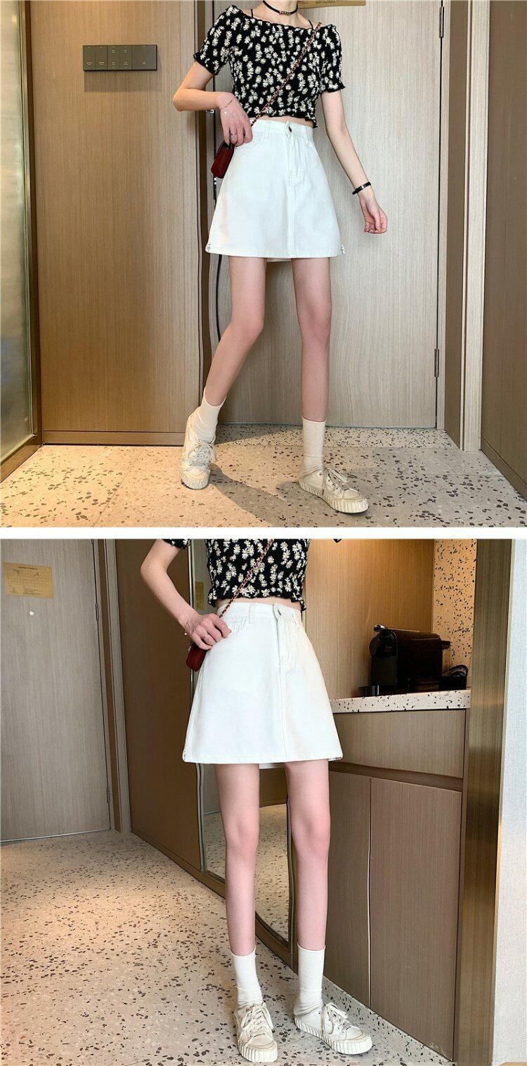 スカート レディース夏服Aラインハイウェストウェスト薄手ホワイトショート 大きめサイズ 夏物 ウエスト コーデ marchs678267555923