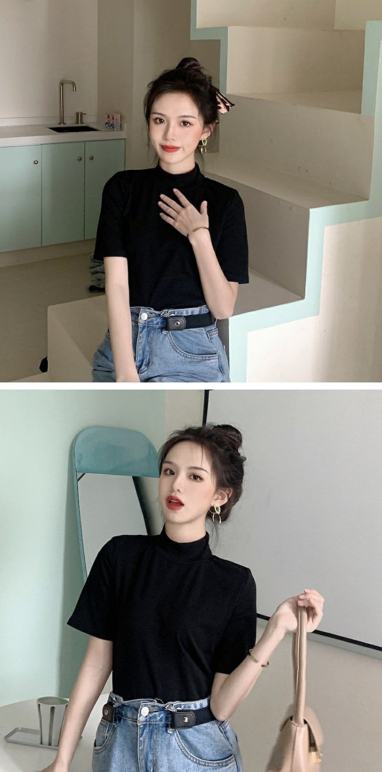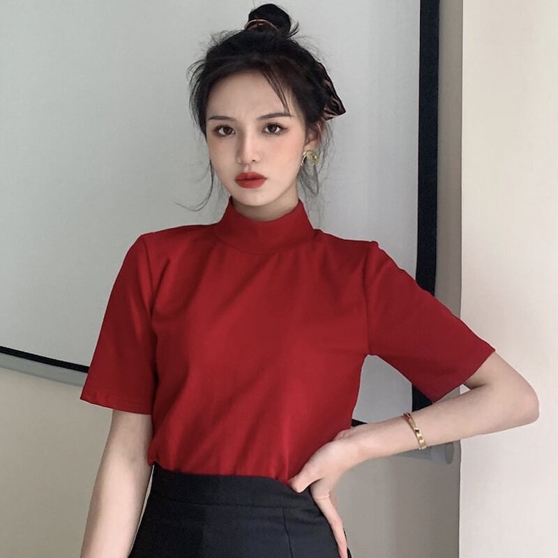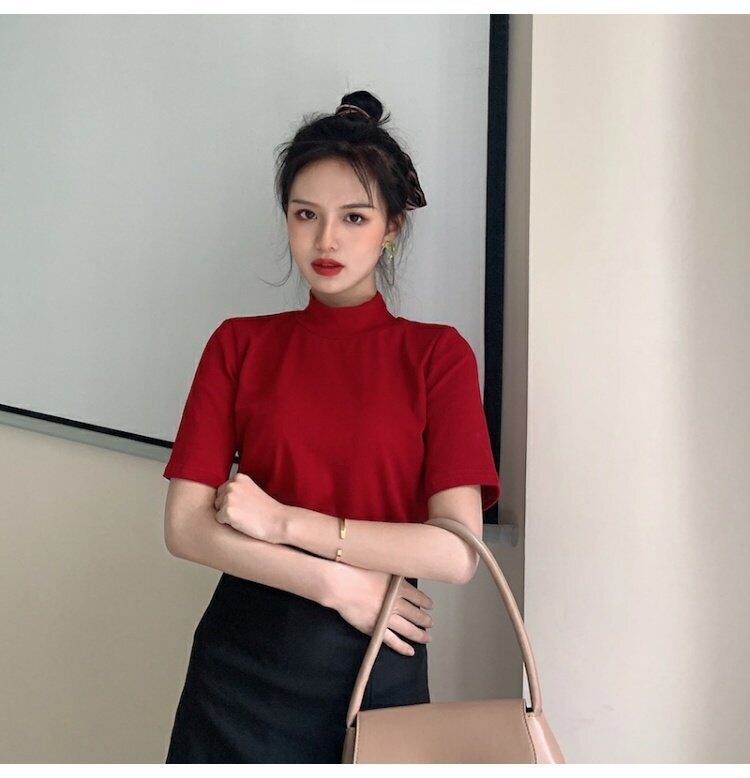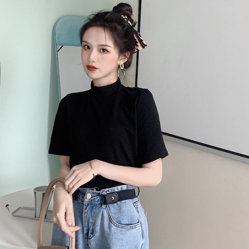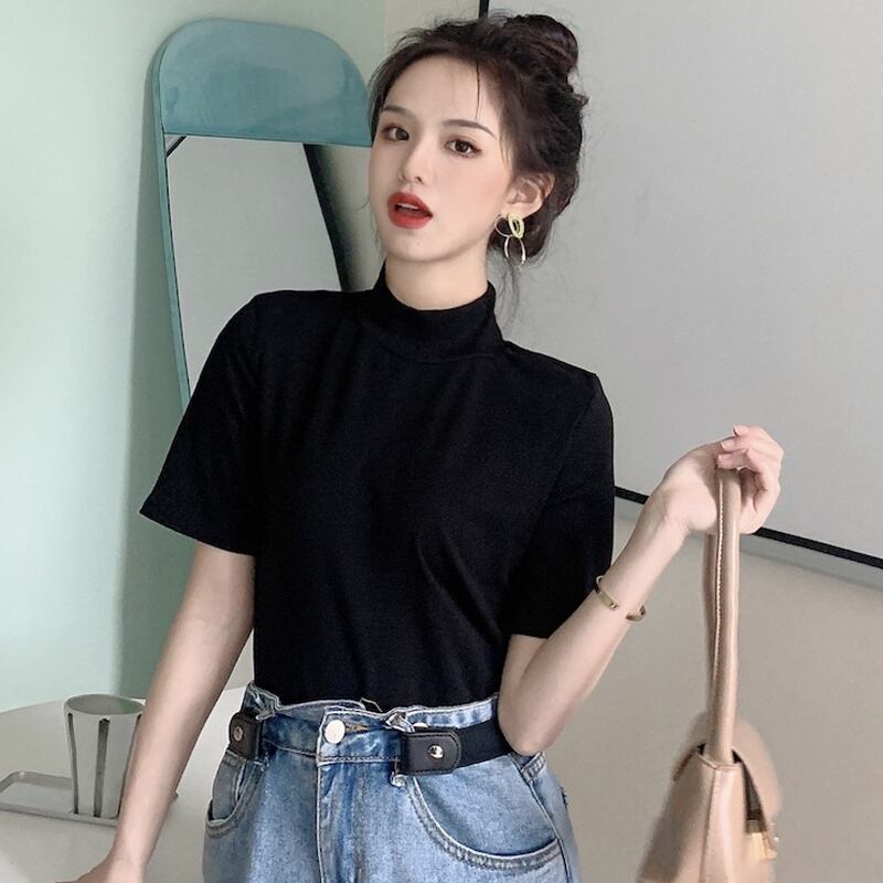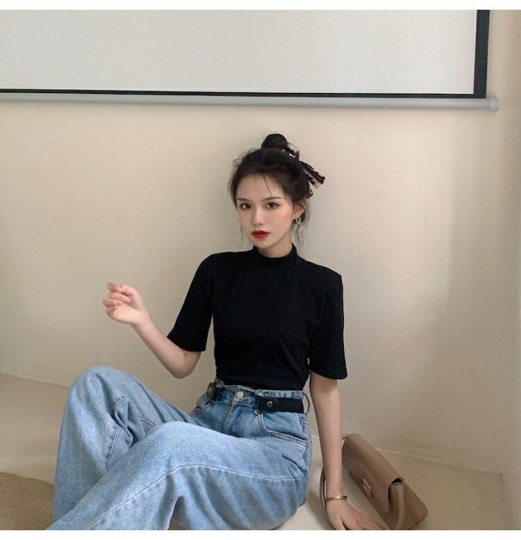 夏服韓国ファッションベーシックブラックカラーTシャツスリムゆったりトップス 夏物 スタイル コーデ marchs6771218800028