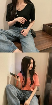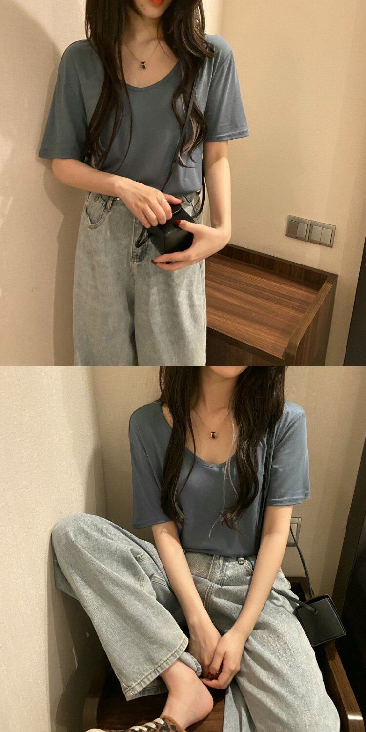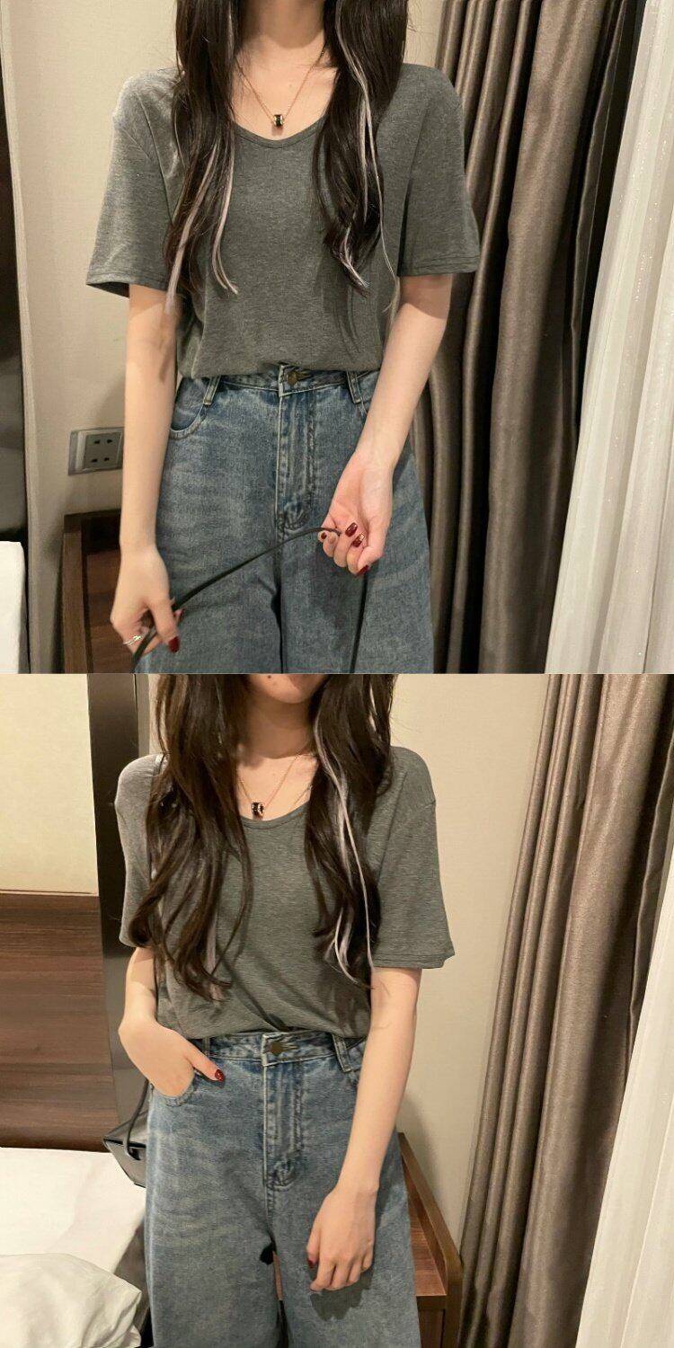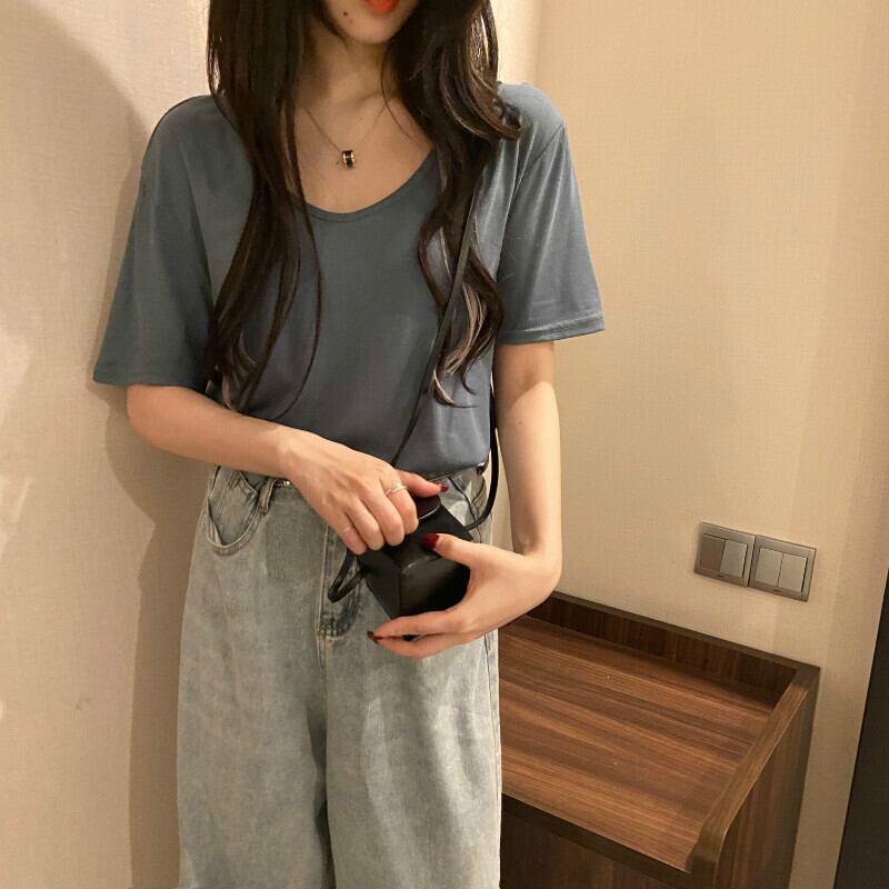 夏服ベーシックVネックゆったりシャツ ソリッド カラールーズTシャツトップス レディース 夏物 ソリッドカラー コーデ marchs6724819357124