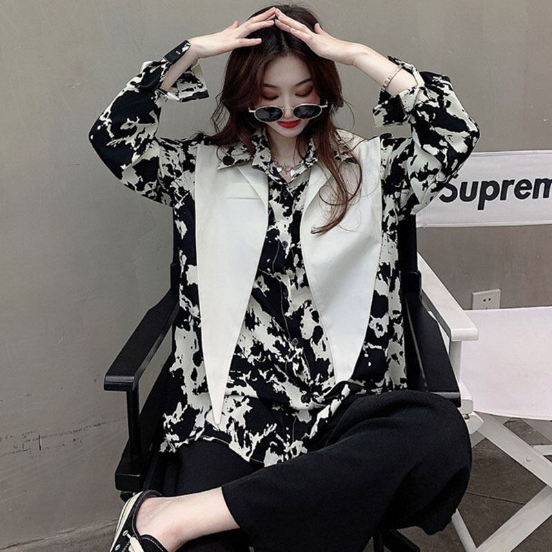 レディーススプリングプリントシャツ スタイルショールトレンド 春物 コーデ marchs6772101928988