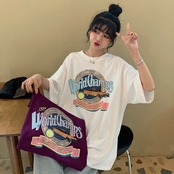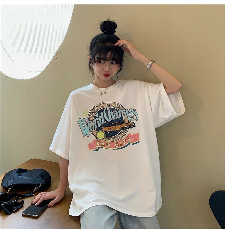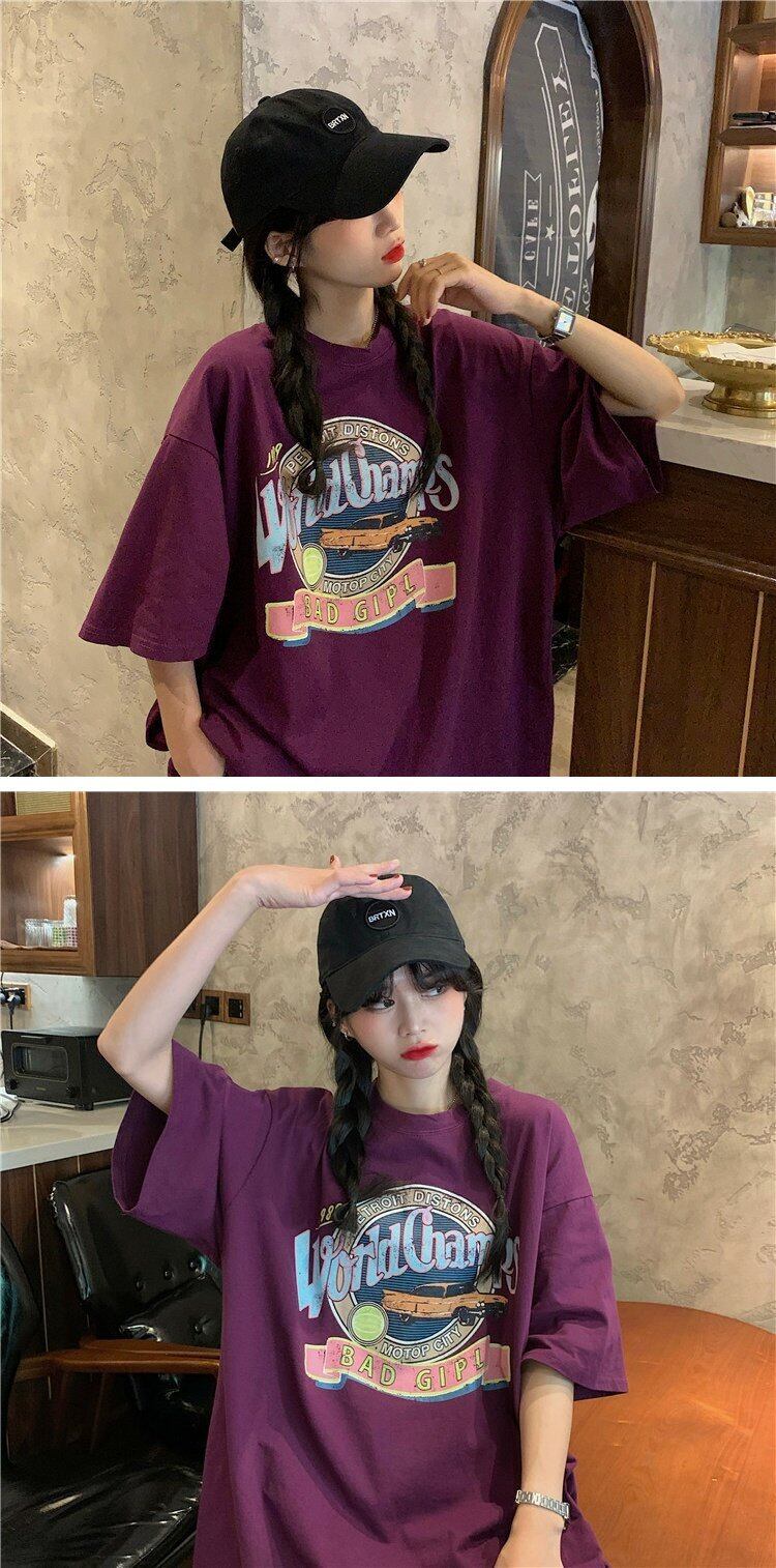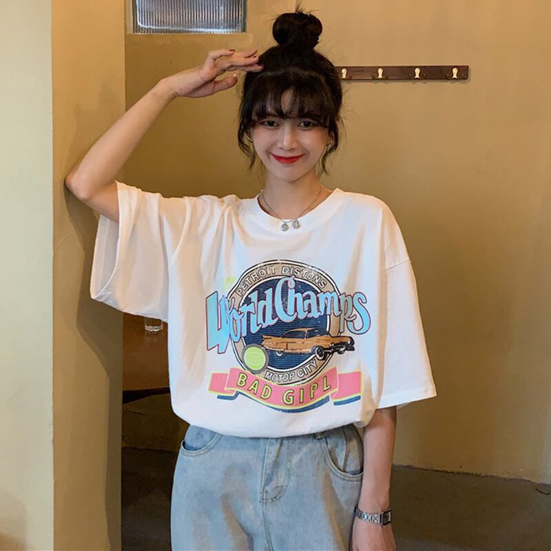 ヴィンテージブラウス 夏服スタイル韓国ファッションルーズカジュアルゆったりシャツ ラウンドネックプルオーバー Tシャツレディース 夏物 Oネック ビンテージ コーデ marchs6780622379998
