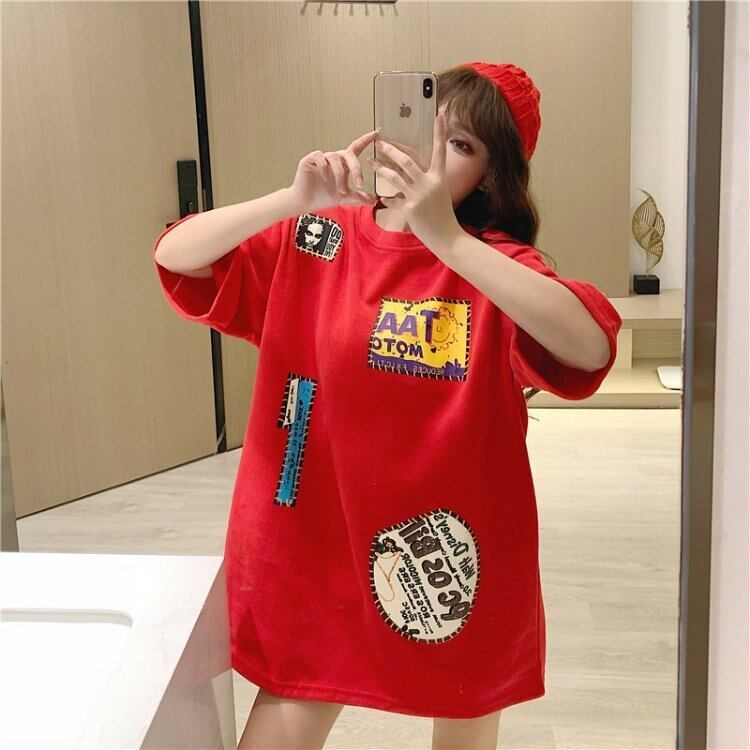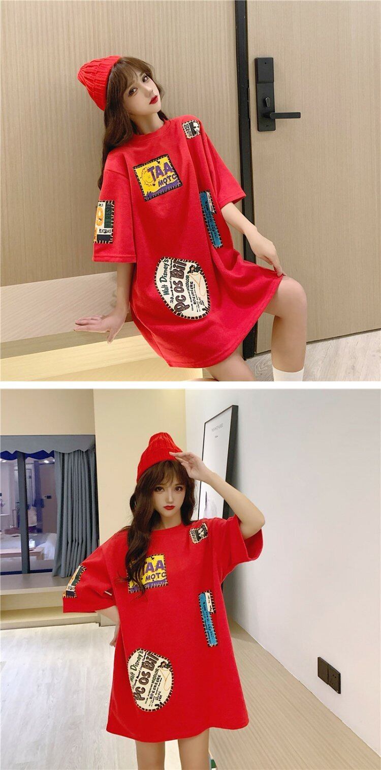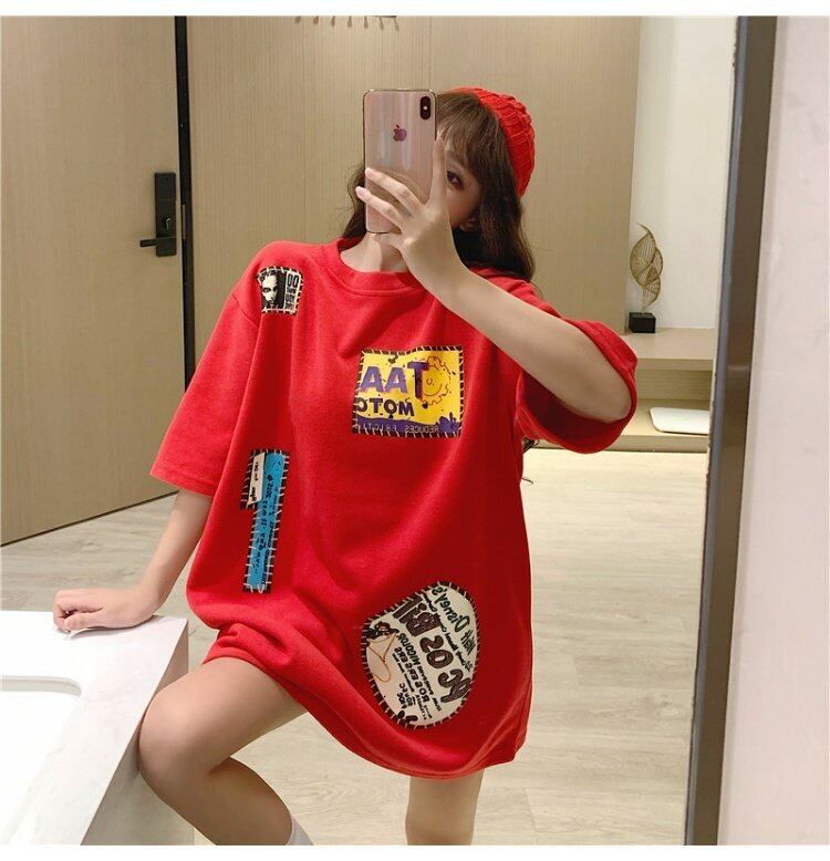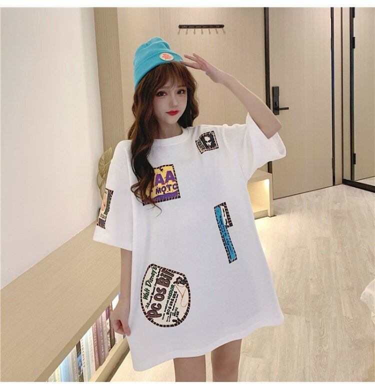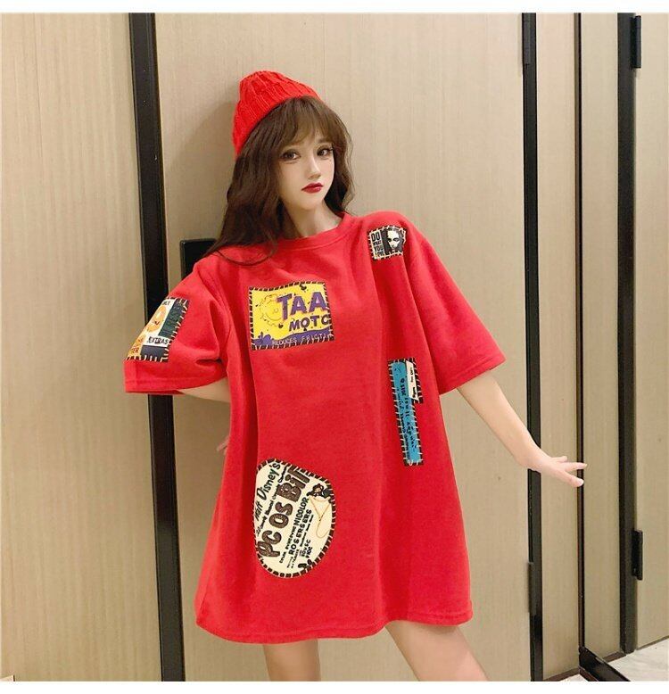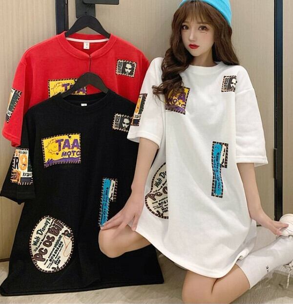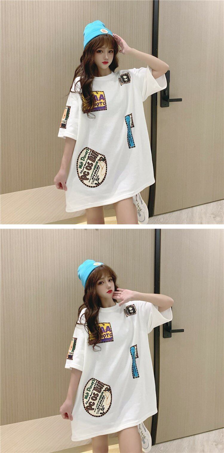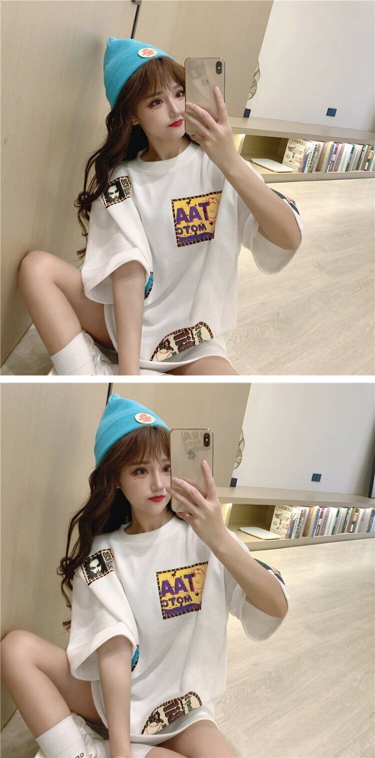 スプリング韓国ファッションプリントルーズラウンドネックTシャツレディーストップス 春物 Oネック スタイル ミドル丈 コーデ marchs6775141244979