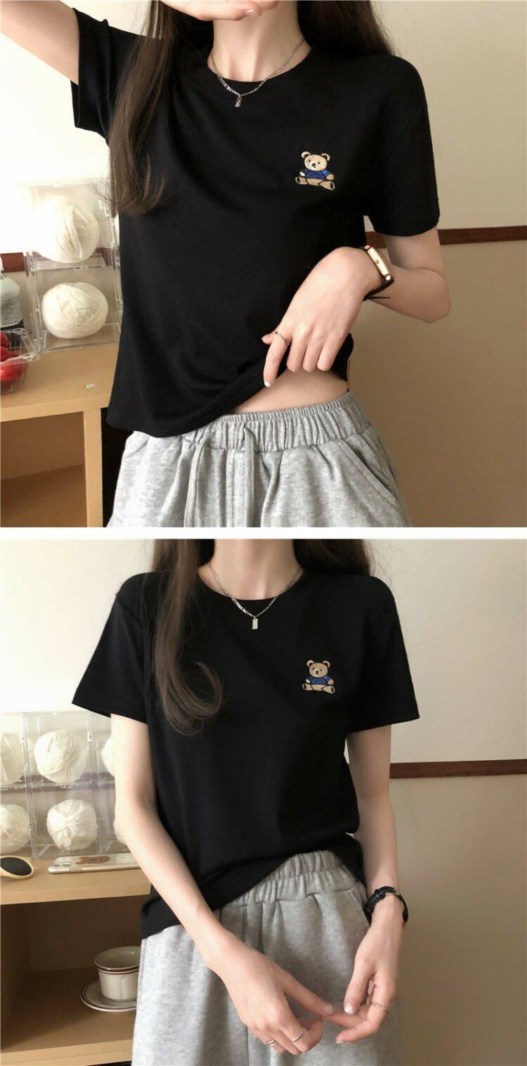 夏服韓国ファッション刺繍ショートTシャツレディースルーズ薄手ラウンドネックプルオーバー トップス 夏物 Oネック スタイル コーデ marchs6770449498220
