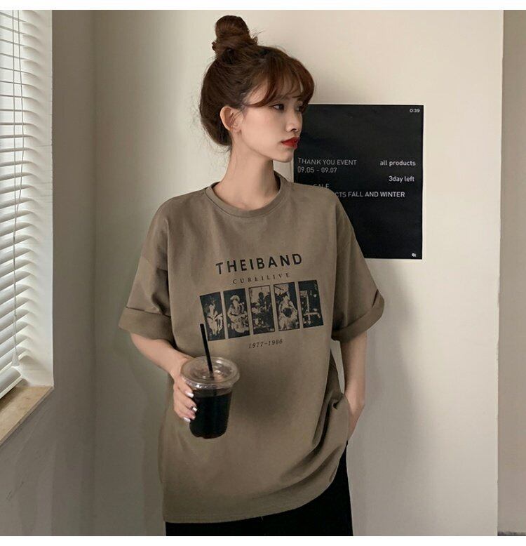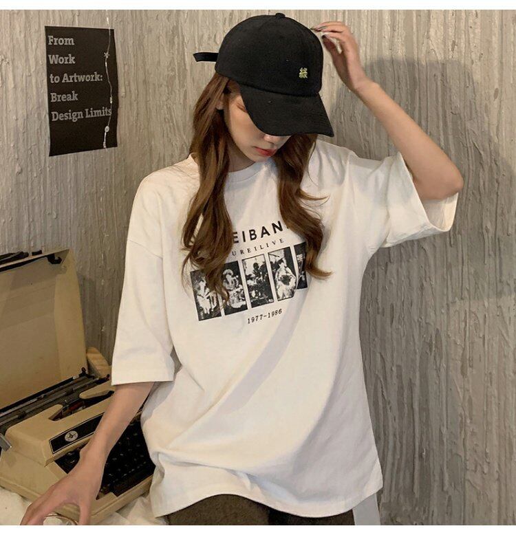 スプリング夏服スタンダードプリントルーズトップス Tシャツレディース レトロ 大きめサイズ 春物 夏物 ヨーロピアン コーデ marchs6710248095444