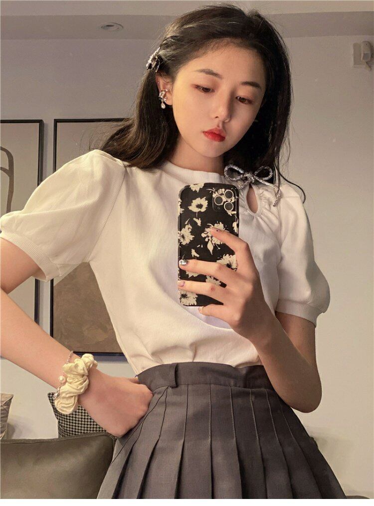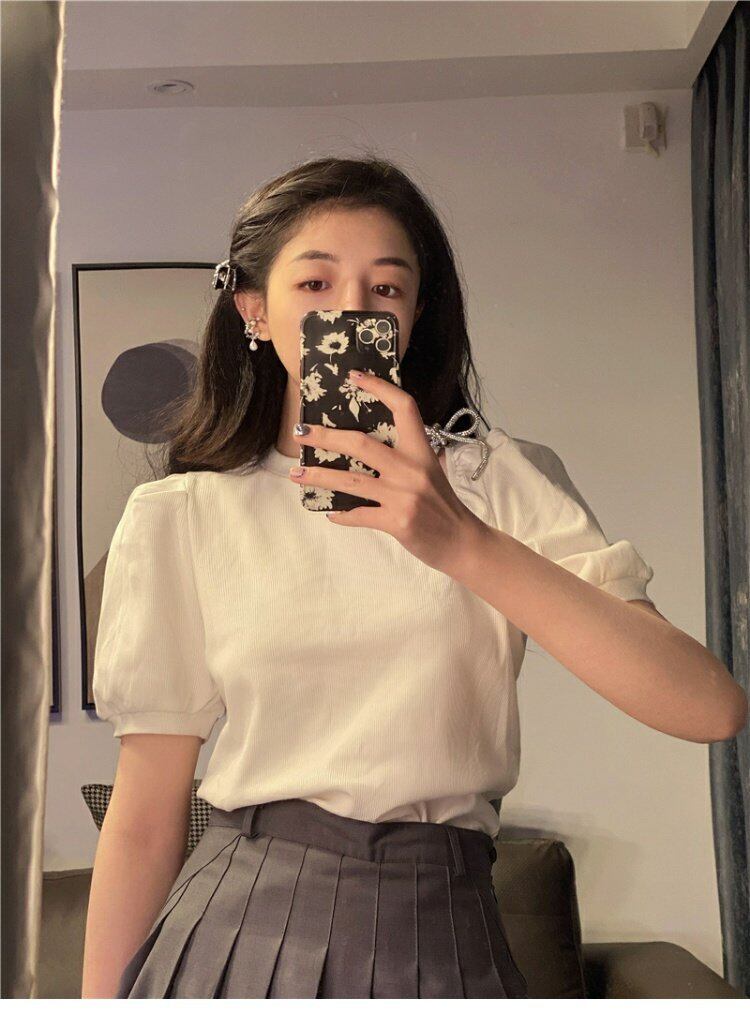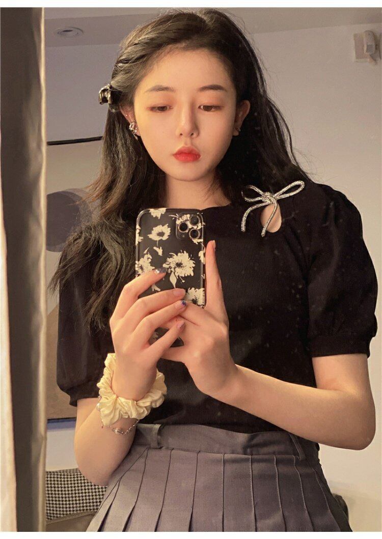 夏服韓国ファッションルーズトップス スタンダードブラックTシャツレディース レトロ 夏物 コーデ marchs6725213729689