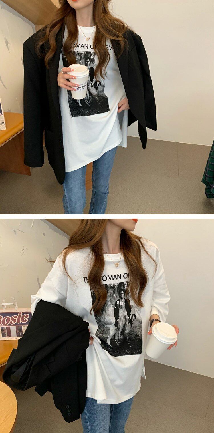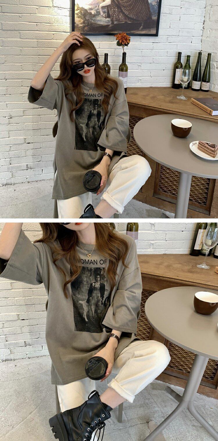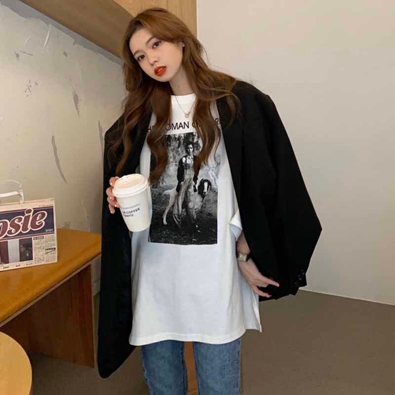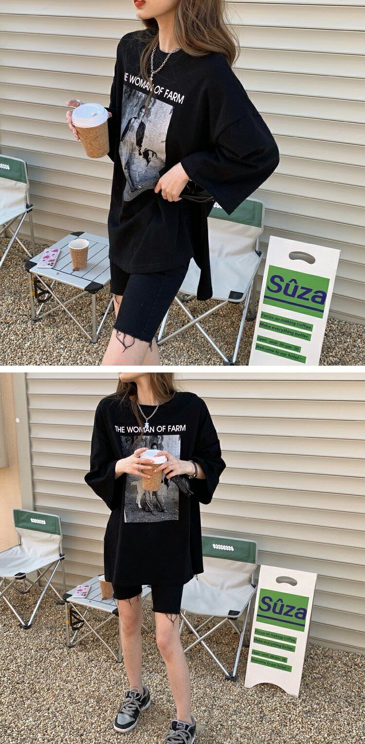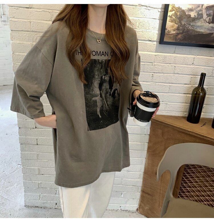 スプリング夏服スタンダードプリントルーズトップス ブラックTシャツトレンド レトロ 春物 夏物 ヨーロピアン コーデ marchs673177684853