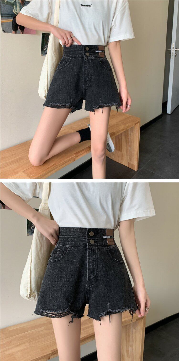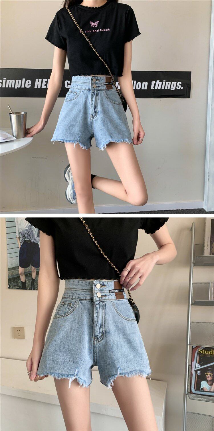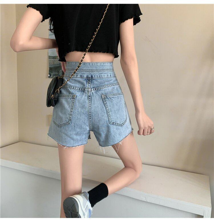 夏服ハイウェスト薄手パンツ ルーズブルーショーツ 夏物 ウエスト コーデ marchs6723416968987