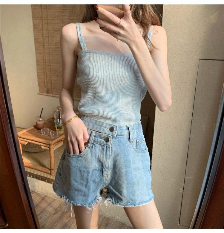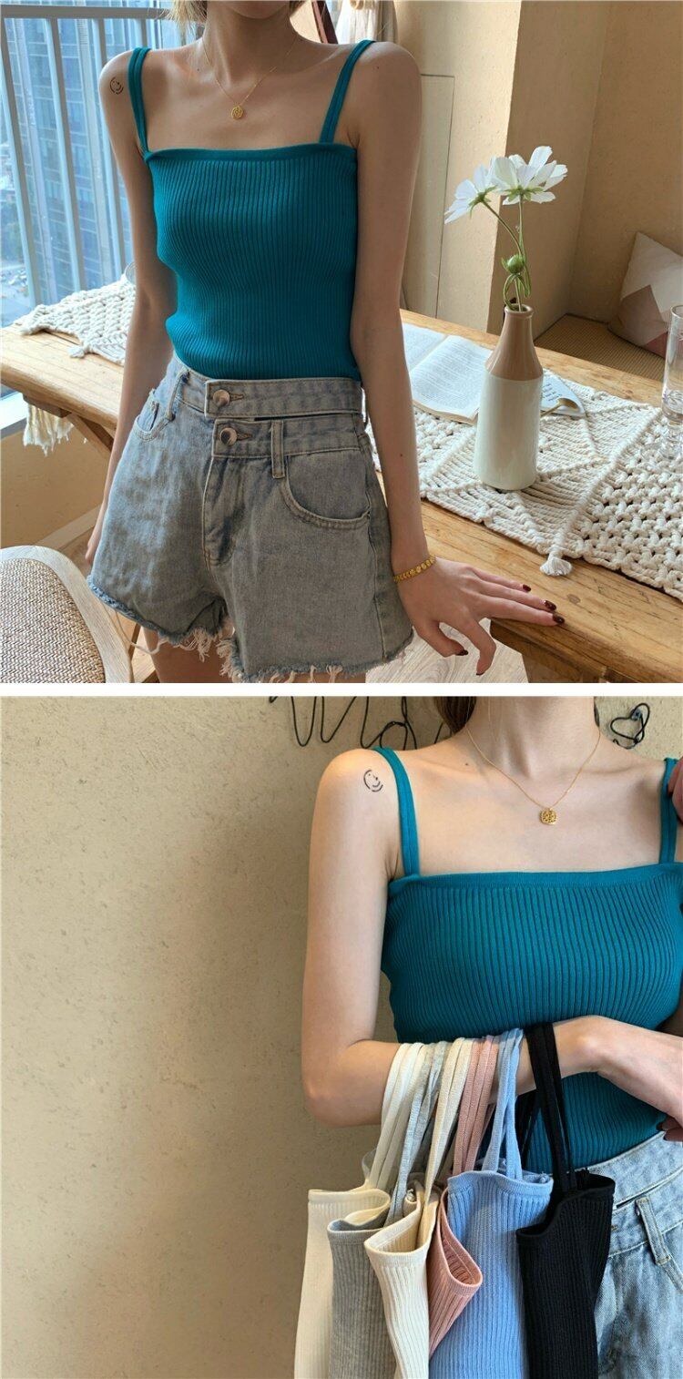 スプリング夏服トレンドスリムソリッド カラーニットブルーシャツ 春物 夏物 ソリッドカラー ヨーロピアン コーデ marchs6746498737858