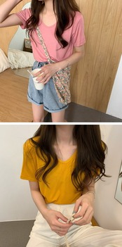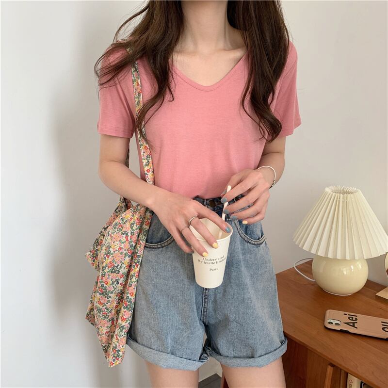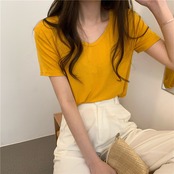 Tシャツシャツ 夏服スリムVネックゆったりトップス 大人ガーリー スウィート キュート カジュアル 夏物 コーデ marchs6733822167806