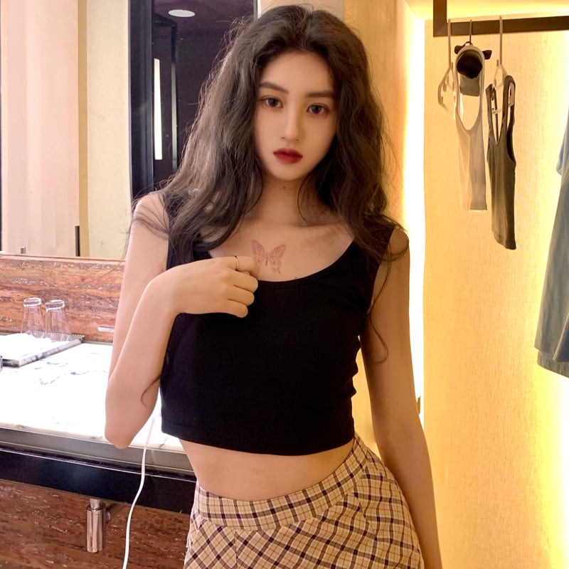スリムなスリミングショートトップを着た、スモールベスト女性夏オールマッチボトミングのシンプルベーシックモデルの韓国版 夏物 韓国ファッション スタイル コーデ marchs6794233007279