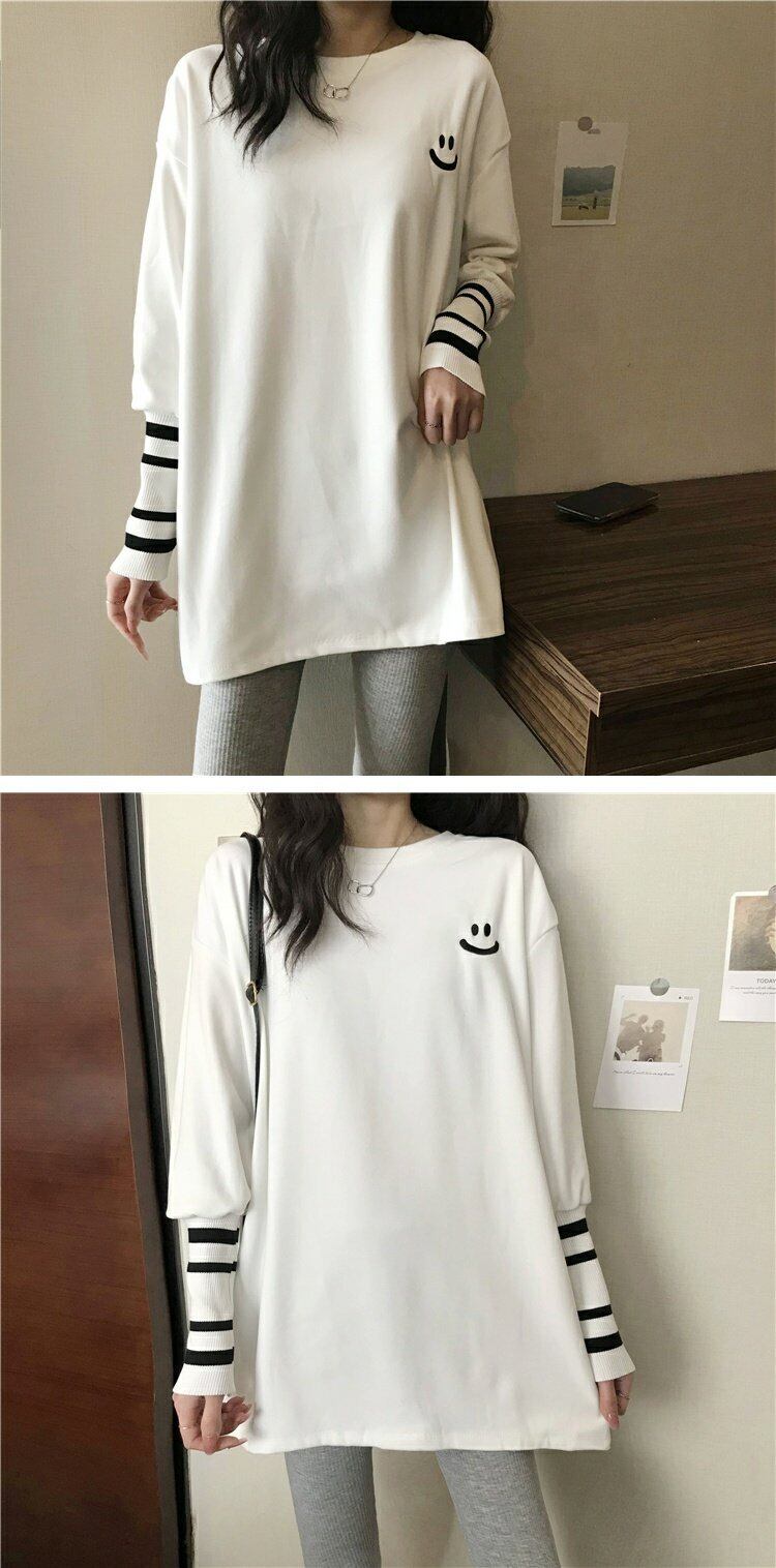 2021年夏新しいウエスタンスタイルの厚みのある白いボトミングシャツルーズで用途の広い長袖長袖Tシャツレディーストップ ロング ホワイト 夏物 コーデ marchs6782037568947