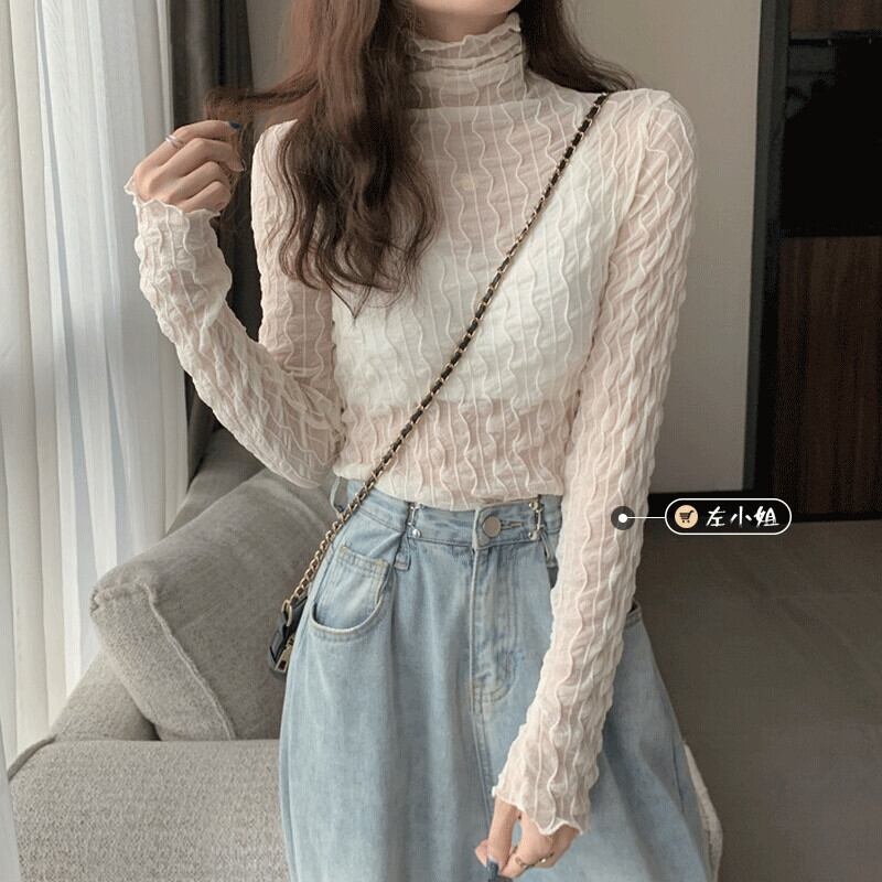 ネットヤーンレースボトミングシャツレディース春ニュースタイルブラックパイルカラーウエスタンスタイル気質とホワイトトップス スプリング 春物 コーデ marchs6772047155723