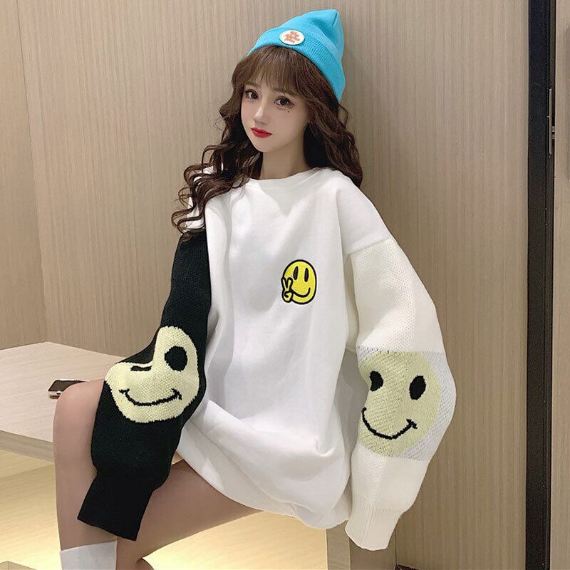 白いセーターの女性の2021年春シーズンの新しい韓国スタイルルーズプラスベルベットのミドル丈のベースセーター ホワイト スプリング 春物 韓国ファッション コーデ marchs6710183254250