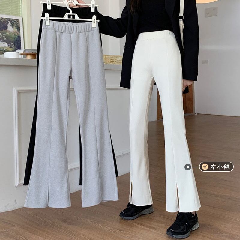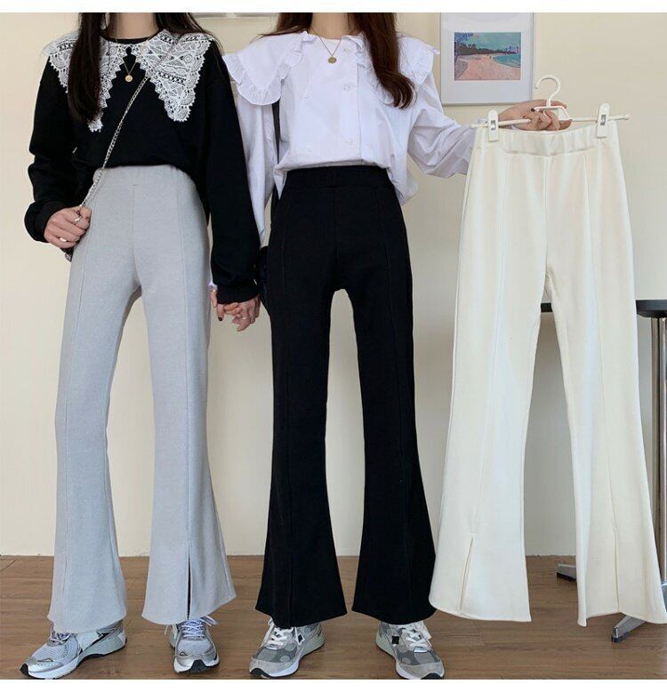 2021年冬の新作フロントスリットパンツレディースファッションハイウエストスリミングマイクロフレアパンツエクスプレッションスリミングホワイトパンツ ハイウェスト レッド ウィンター 冬物 コーデ marchs6774936128714