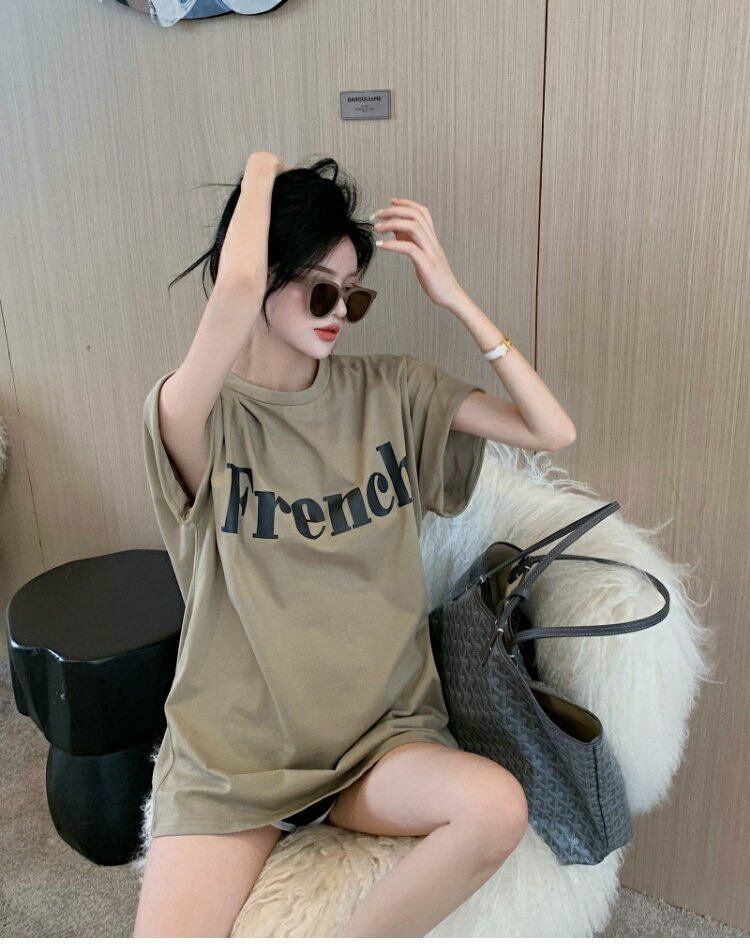 2021年夏の新しい香港スタイルの韓国版の文字は肩を落とし、ルーズトップの揚げ物通りの半袖Tシャツの女性の感覚をデザインします ストリート 夏物 韓国ファッション コーデ marchs6722902259801