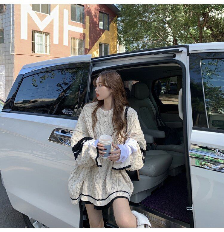 2021年春の新しい韓国のインルーズラウンドネックプルオーバーシャツステッチデザインツイストプルオーバーセーター女性 スプリング 春物 Oネック 韓国ファッション コーデ marchs6784635269673