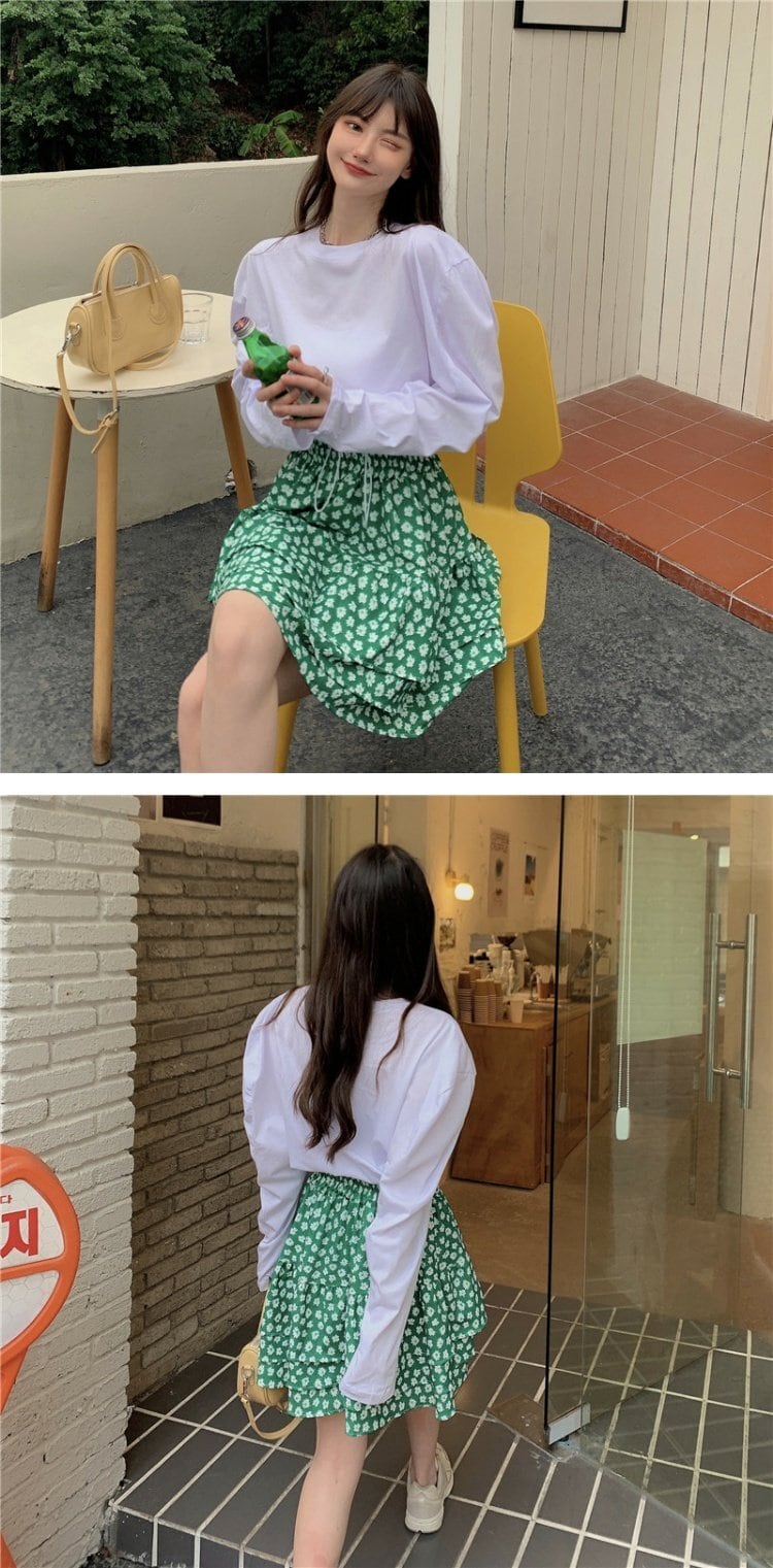 ウエスタンスーツレディース2021年夏新作長袖半セーターフローラルショートスカート気質ツーピーストレンド ロング 夏物 花柄 コーデ marchs6746979254548