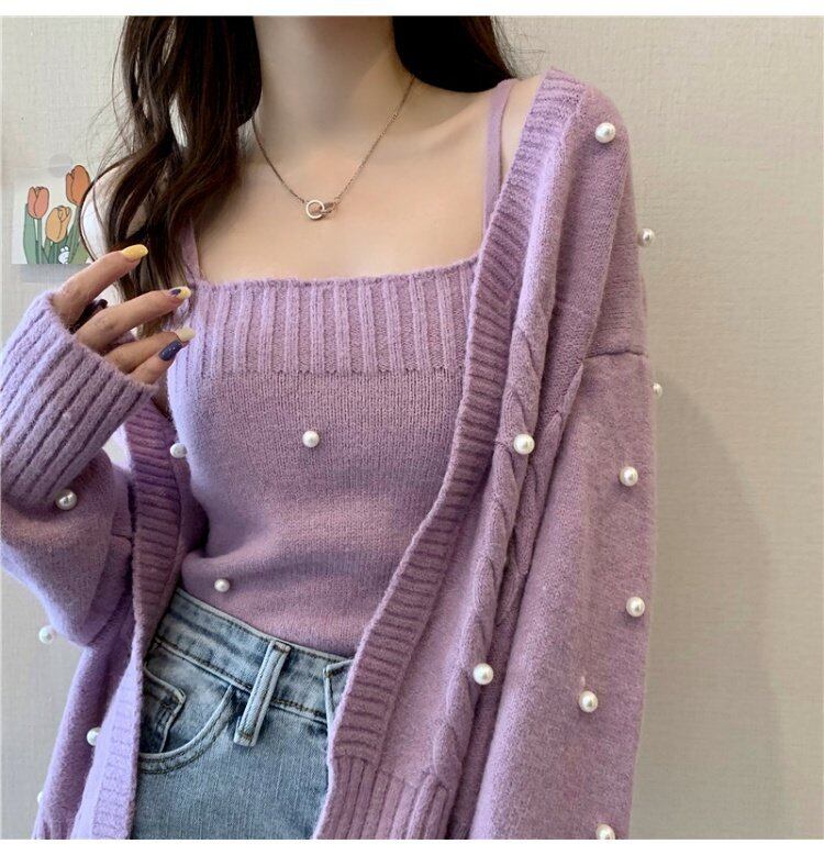 優しいツーピース気質春秋スリムスーツレディースウエスタンスタイルフライドストリートニットカーディガントップス スプリング 春物 オータム 秋物 コーデ marchs6748674905017