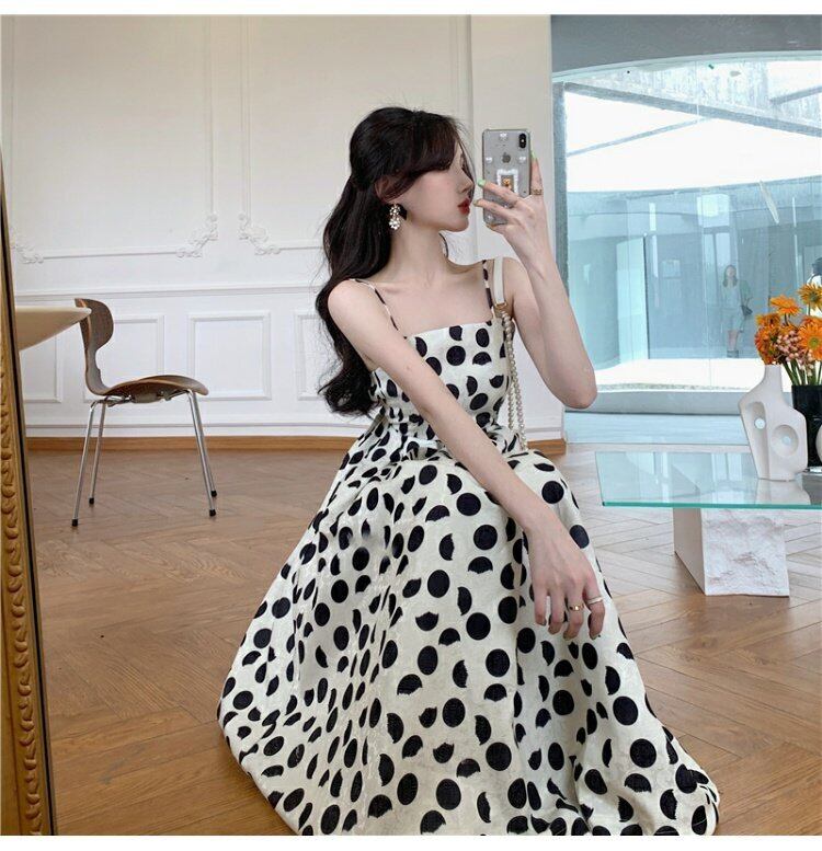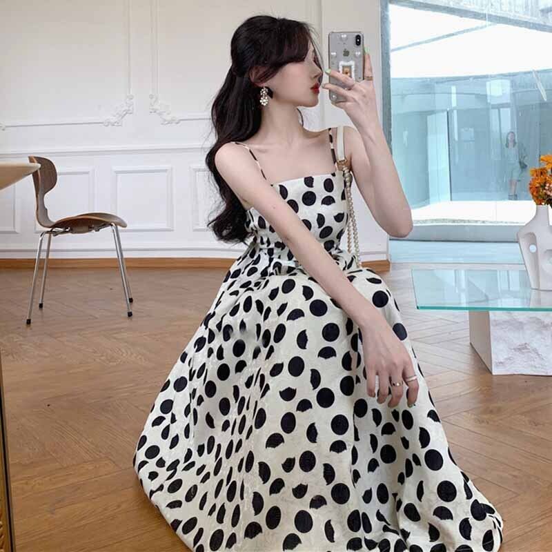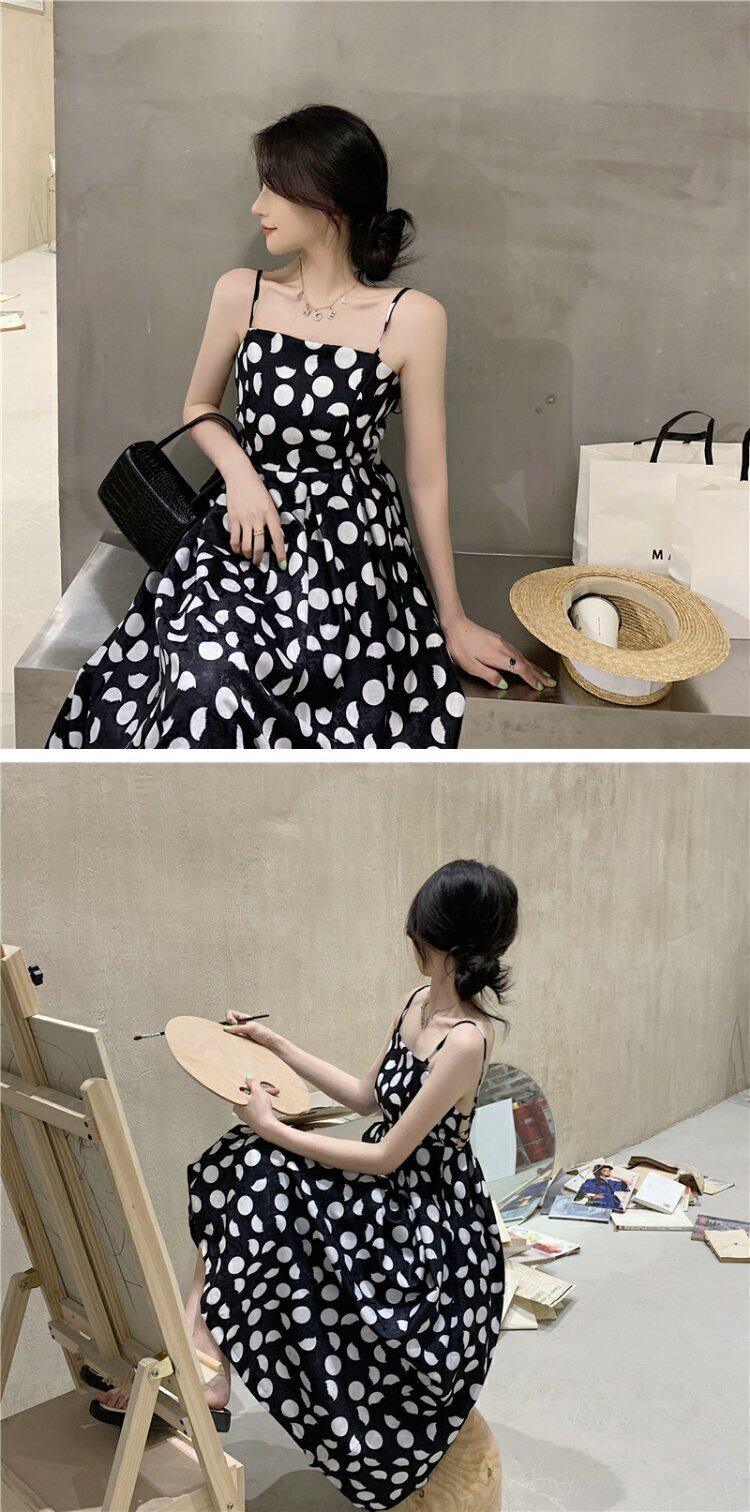 フランスの気質の女性のセクシーな背中の開いたレースアップ水玉サスペンダードレス女性の夏の新しいスタイルの揚げストリートスカート 夏物 ワンピース コーデ marchs674017752940