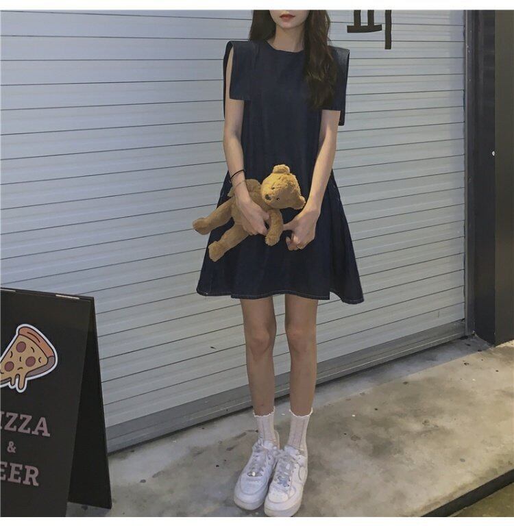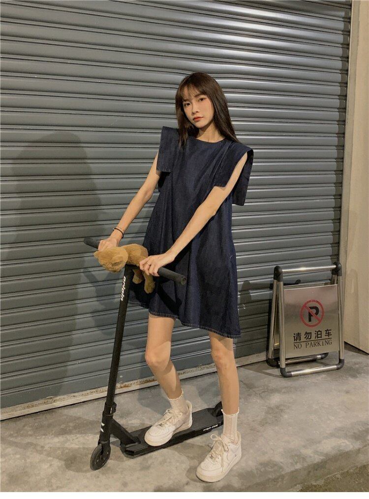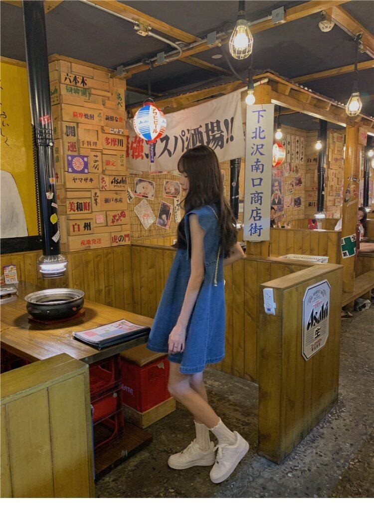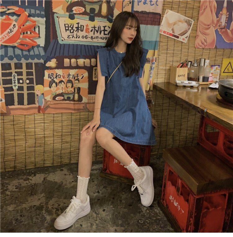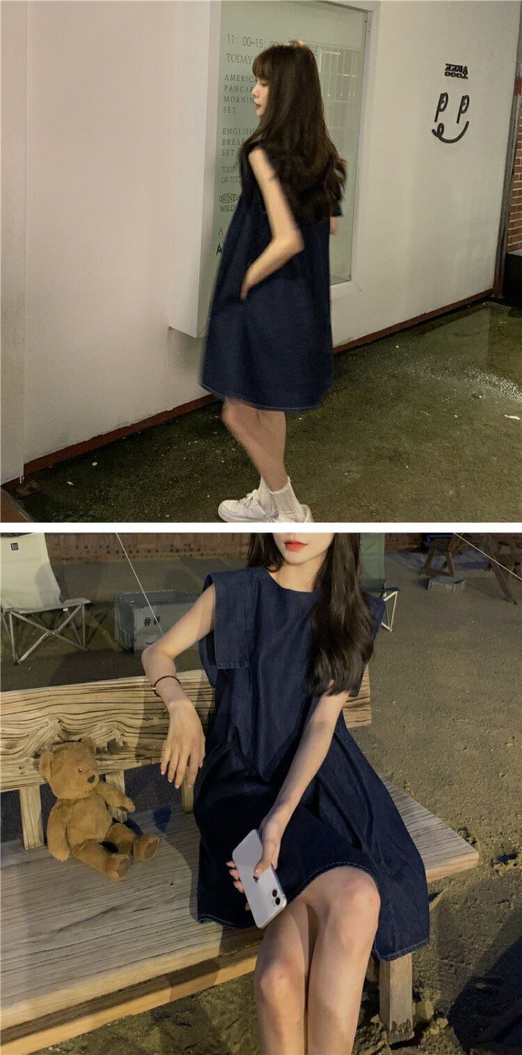 ノースリーブのベストドレス女性の夏の韓国スタイルのデザインセンスの小さな男が肉と薄片のデニムスカートを覆っている 夏物 韓国ファッション ワンピース コーデ marchs6713890283642