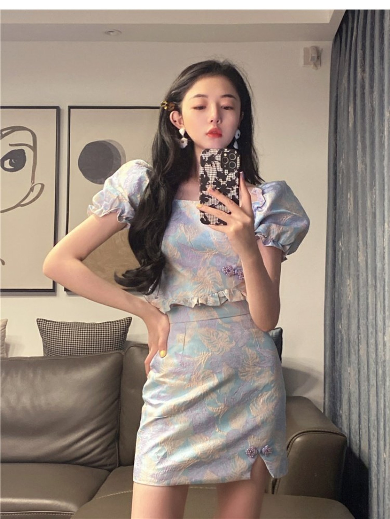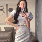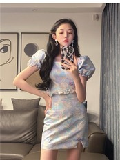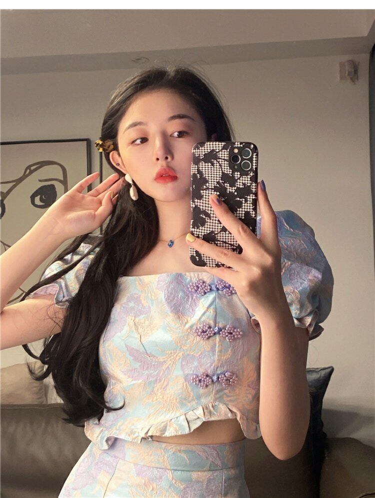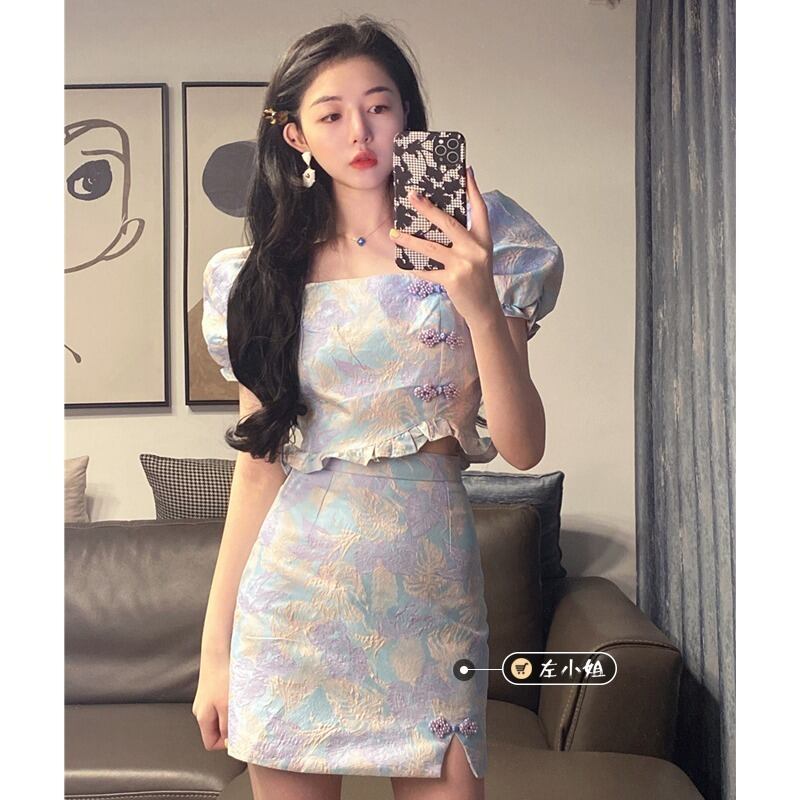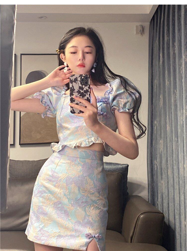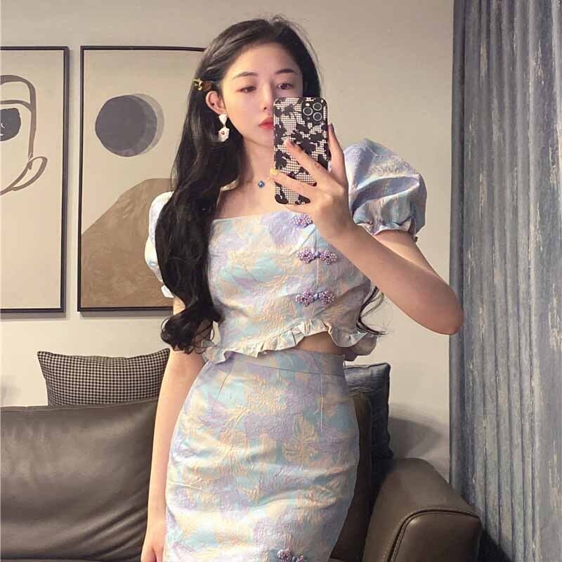 パレススタイルのチャイナドレスのツーピーススカートの女性の2021年夏の新しい甘くてフランスの気質の女性のスーツ レース 大人ガーリー スウィート キュート カジュアル 夏物 コーデ marchs6723098464898