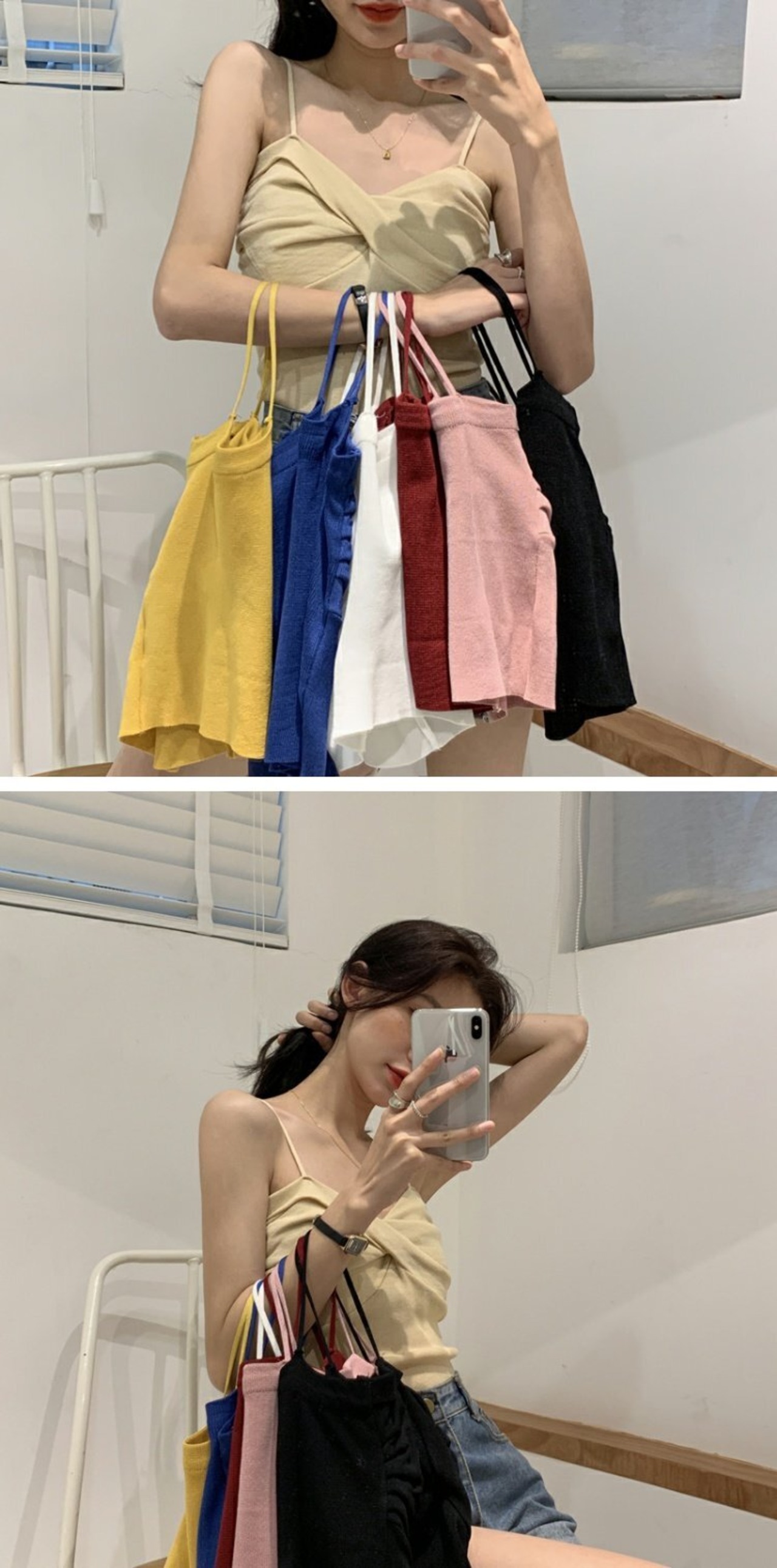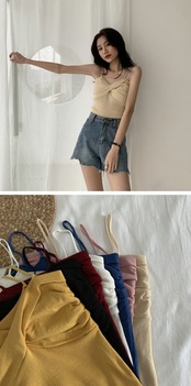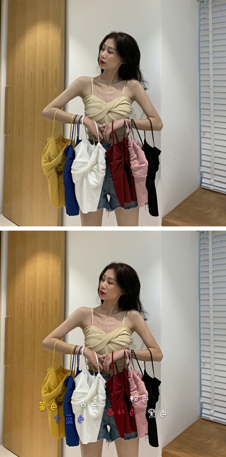 スキームニットの小さなキャミソール、フェミニンなクロスデザイン、アウターウェアのノースリーブボトミングシャツ、夏の新しいスタイル 夏物 コーデ marchs6717878003193